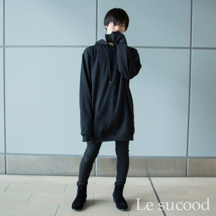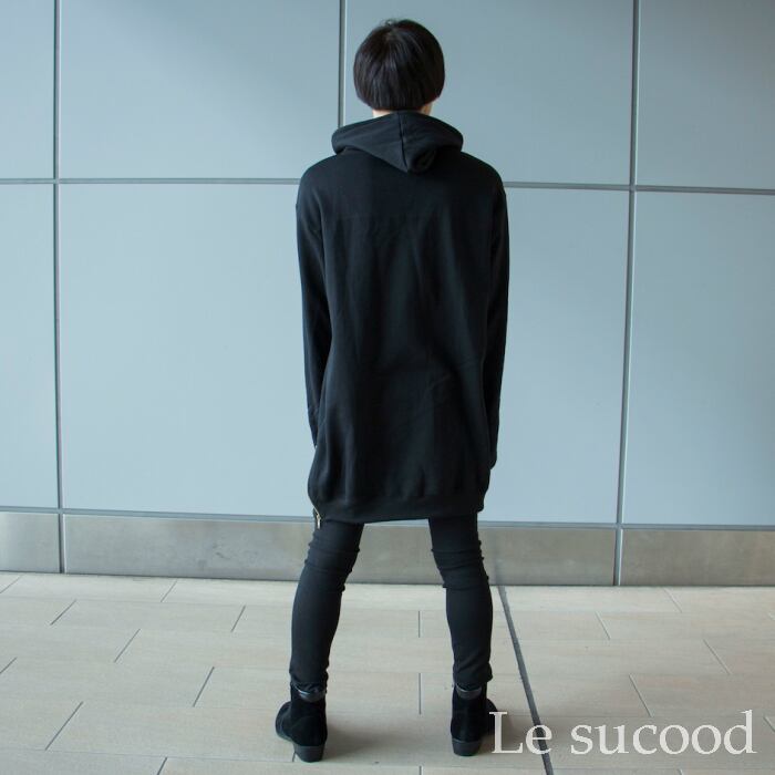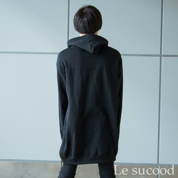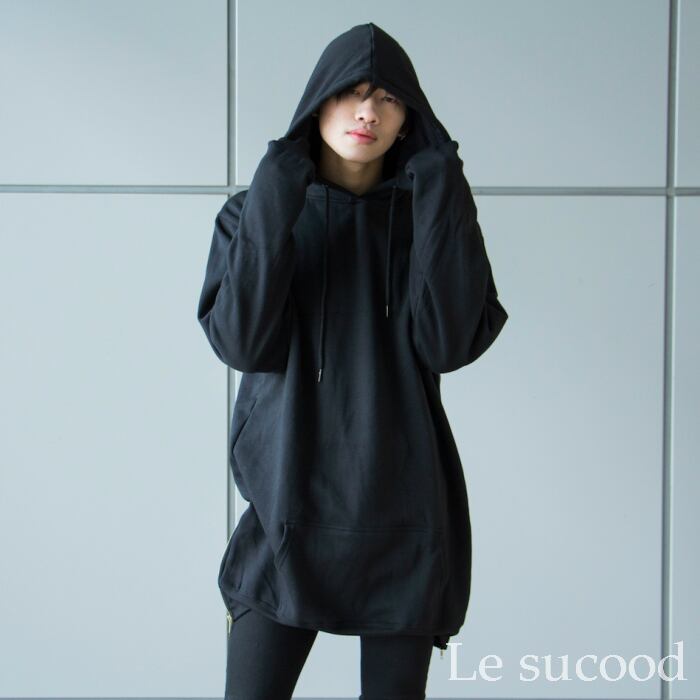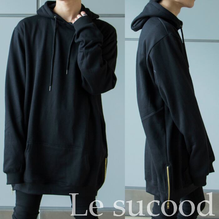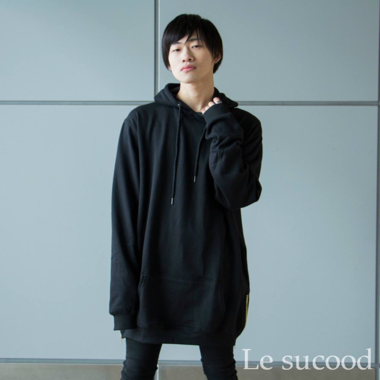 【Le sucood】【お支払い確認後20日以内発送】top014 サイドZIP スリットパーカー ロングパーカー ビックパーカー ボリュームパーカー サイドスリット ビッグシルエット プルオーバー ゆったり メンズ レディース ユニセックス モード系 ビジュアル系 ルシュクード