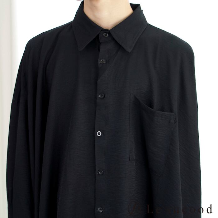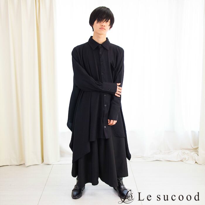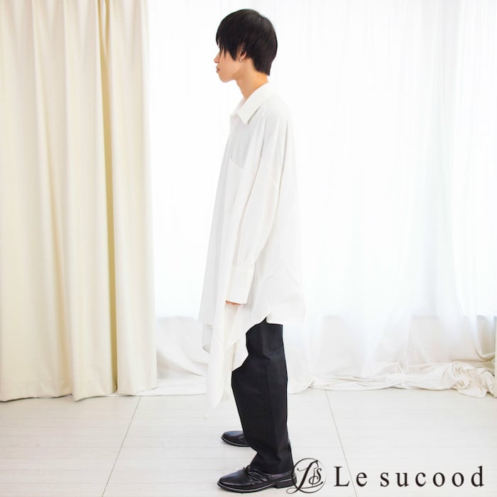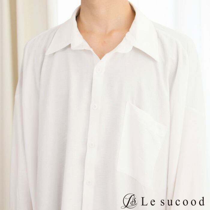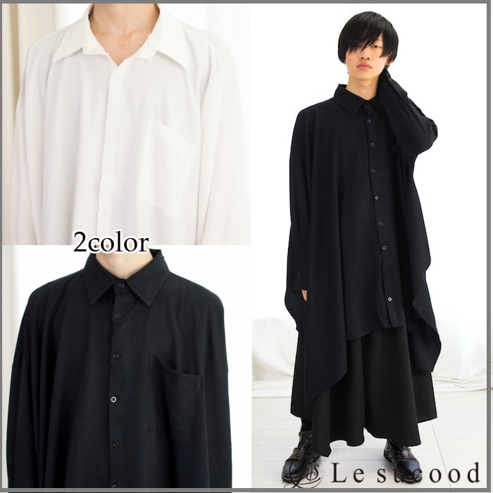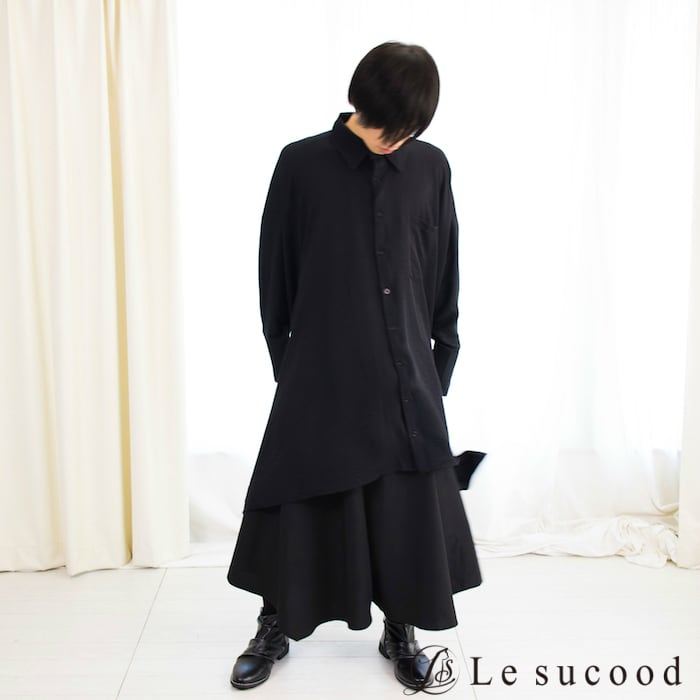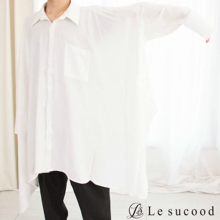【Le sucood】ビッグ ロング シャツ モード 全二色 黒 白 ユニセックス メンズ レディース 無地 ゆったり 大きいサイズ ロングスリーブ ドルマンシャツ シャツワンピ フリーサイズ ルシュクード | Le sucood