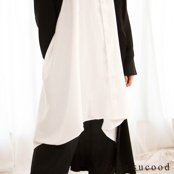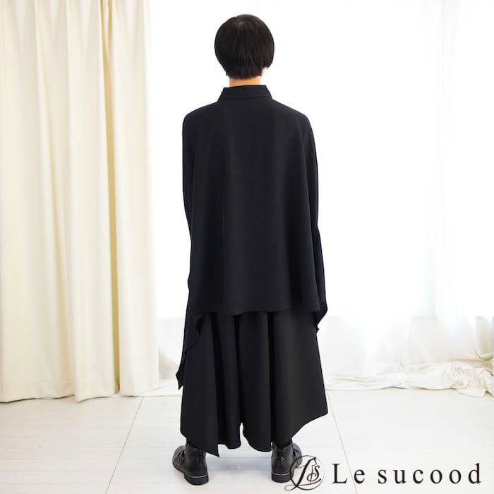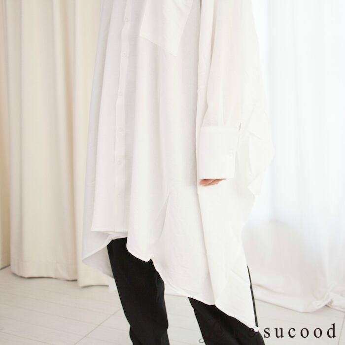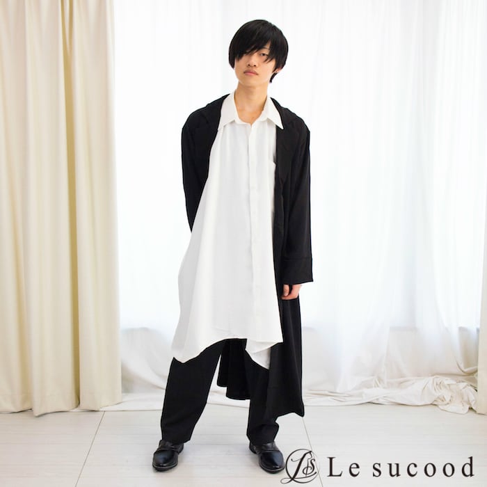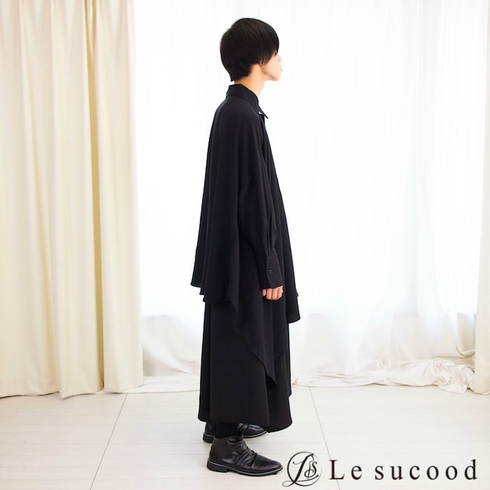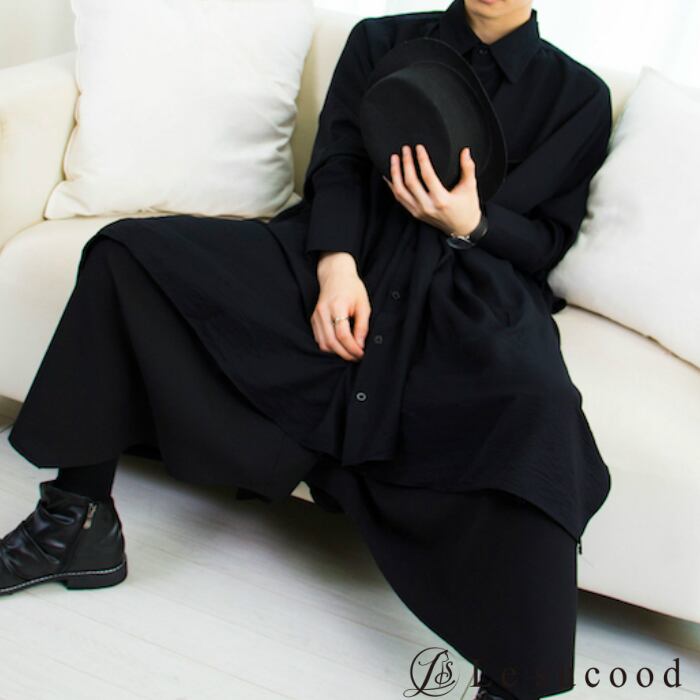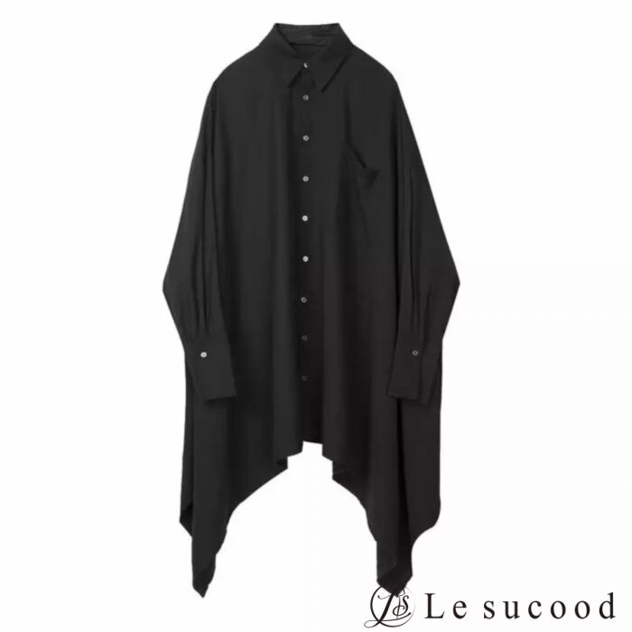【Le sucood】ビッグ ロング シャツ モード 全二色 黒 白 ユニセックス メンズ レディース 無地 ゆったり 大きいサイズ ロングスリーブ ドルマンシャツ シャツワンピ フリーサイズ ルシュクード | Le sucood