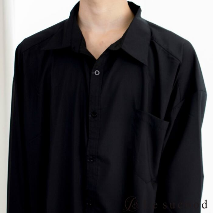 【Le sucood】top027 サイドスリット スーパー ロングシャツ スリットシャツ シャツワンピース シャツワンピ 変形シャツ ビッグシルエット ボリュームシャツ メンズ ユニセックス 黒 ブラック 白 ホワイト 全二色 モード系 ヴィジュアル系 ルシュクード