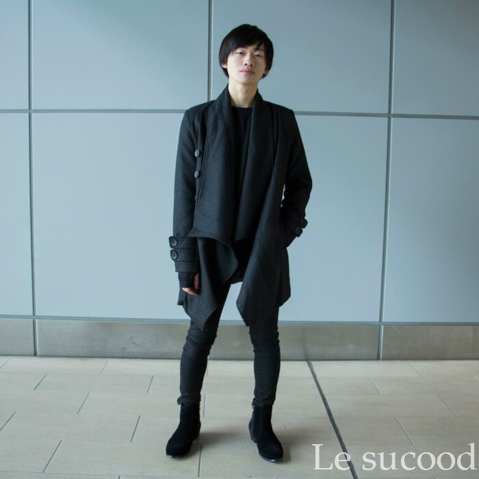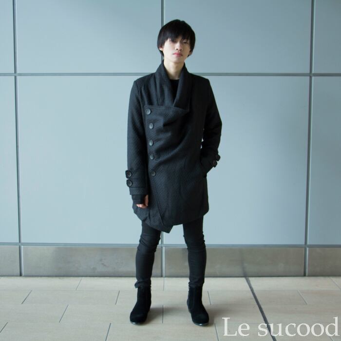【Le sucood】 ハイネック コ−ト ラップコート ボリュ−ム ネック ロングコ−ト ドレープ ガウン ウールコート アウタ− メンズ レディース ユニセックス ブラック 黒 モ−ド系 ビジュアル系 ルシュクード