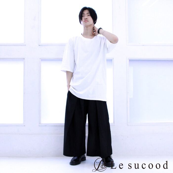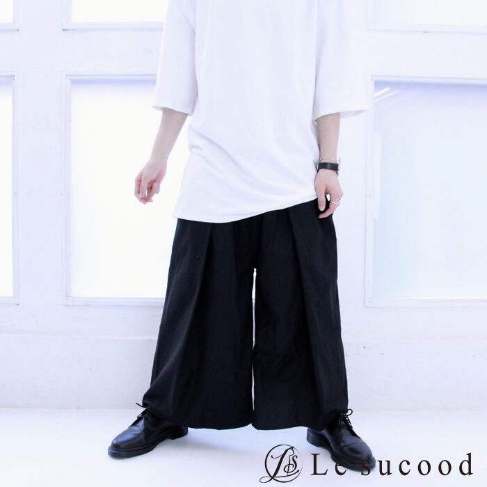 【Le sucood】 袴パンツ はかまパンツ モード 黒 ブラック メンズ レディース ラップパンツ ドレープ サルエル ガウチョ ワイドパンツ タイパンツ ボリュームパンツ クロップドパンツ 大きいサイズ ゆったり ビジュアル系 ユニセックス ルシュクード | Le sucood