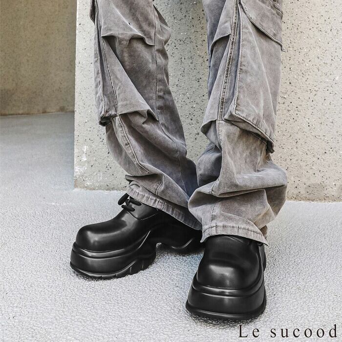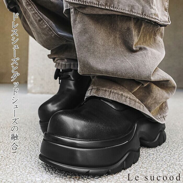 【お支払い確認後20日以内発送】Le sucood 厚底スニーカー風レースアップシューズ ダッドシューズ ダッドスニーカー 厚底 デザインシューズ ボリュームソール チャンキーソール ハイソール プラットフォームスニーカー カジュアルシューズ メンズ モード系 ストリート系 サロン系 個性的 原宿系 | Le sucood