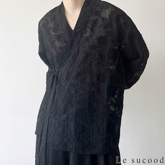 【お支払い確認後20日以内発送】Le sucood 花柄 シースルー シャツ メンズ シアーシャツ 花柄シャツ フラワーシャツ 長袖 日焼け止め 羽織 モード系 ゆったり レースアップシャツ 透け感コーデ レイヤードコーデ 和テイスト メンズ モノトーン ストリート系 サロン系 個性的 原宿系 | Le sucood