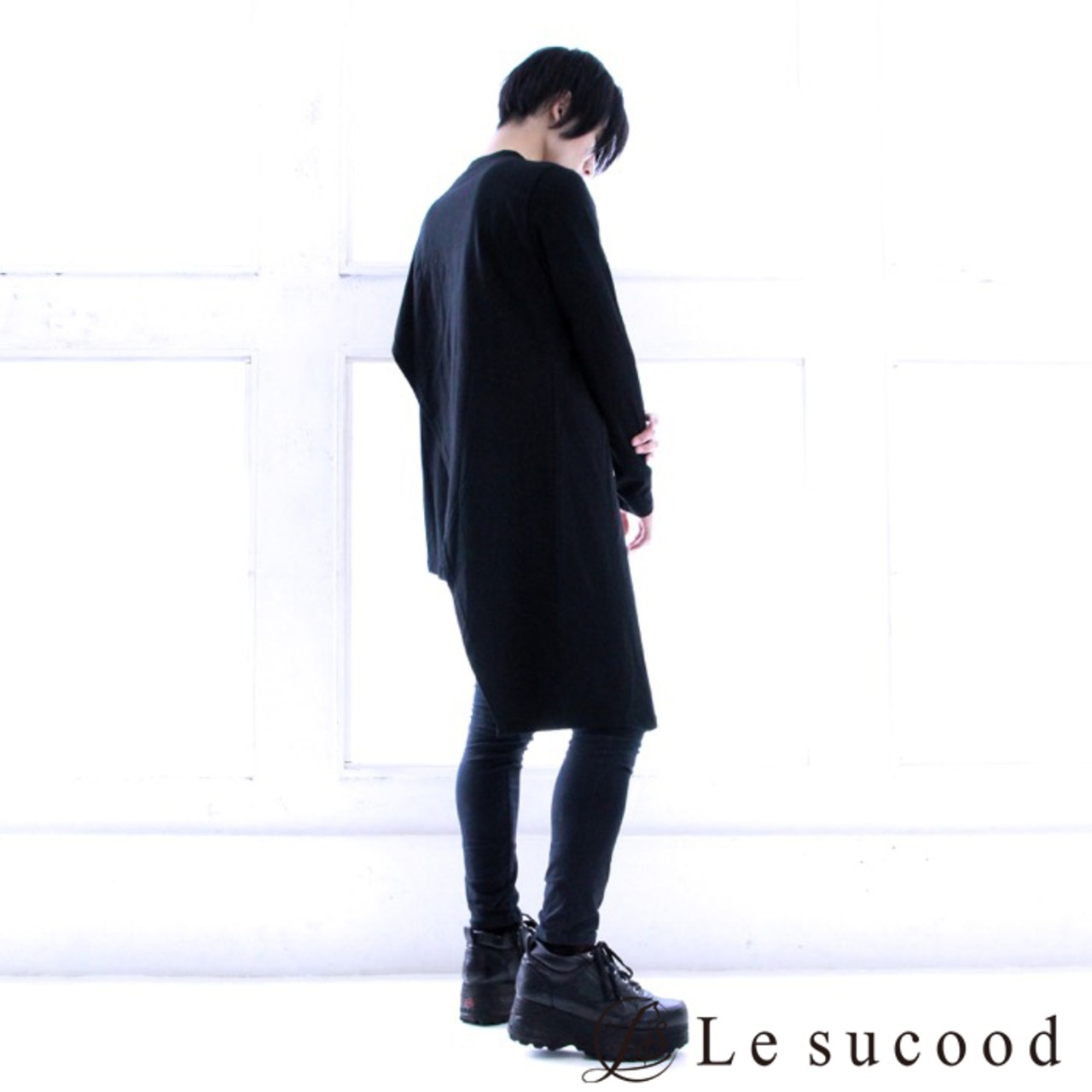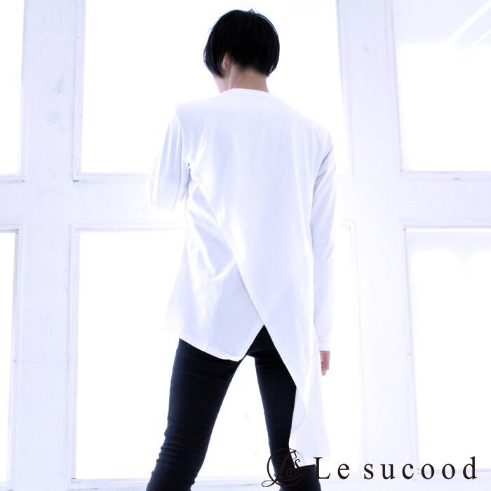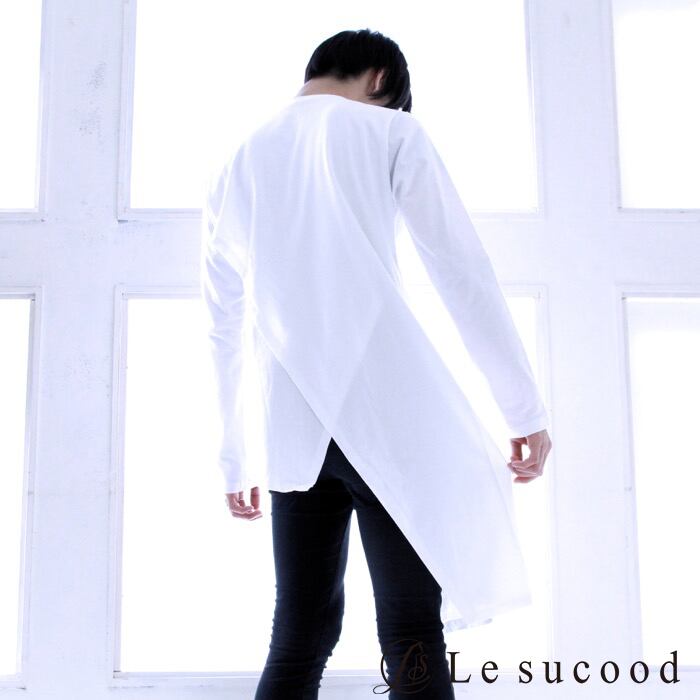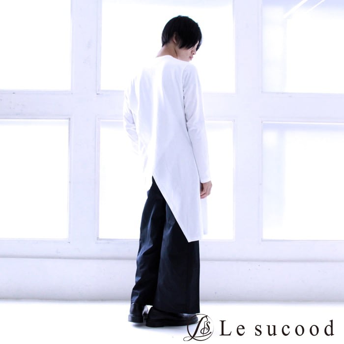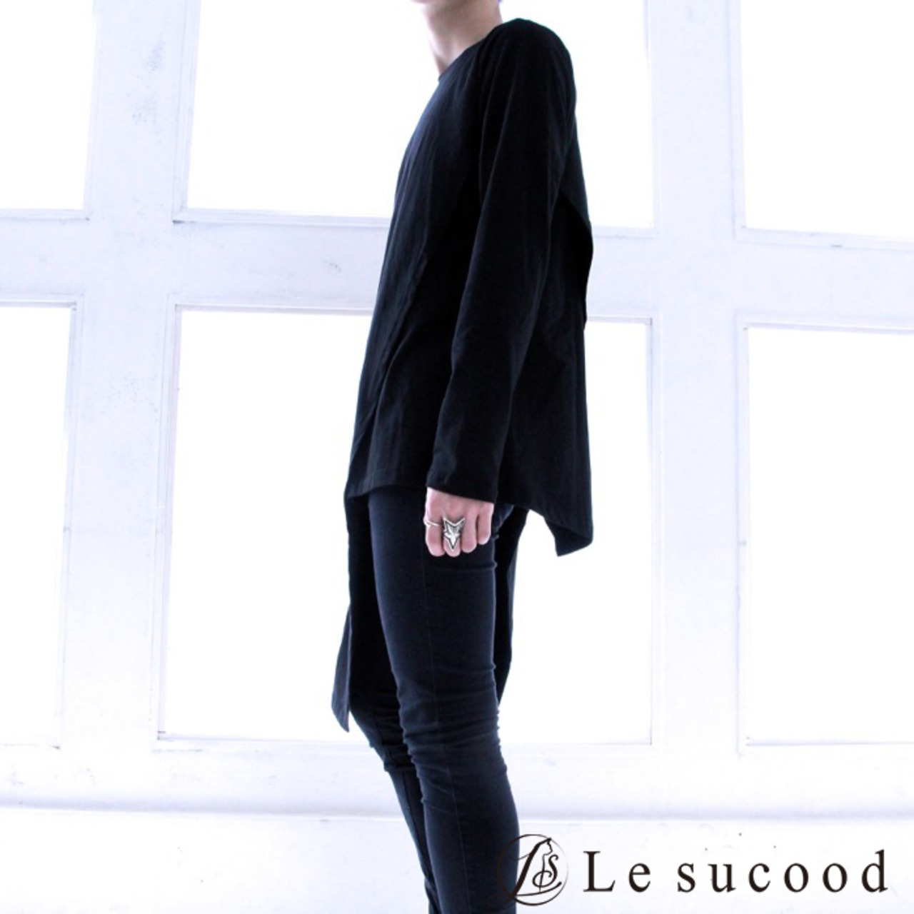 【Le sucood】【お支払い確認後20日以内発送】top042 フェイクレイヤードTシャツ 長袖 左右非対称 アシンメトリー アシメシャツ カットソー ワンピース風 トップス 春服 個性デザイン レディース メンズ ユニセックス 黒 白 フリーサイズ モード 大きいサイズ ストリートモード クルーネック アメカジ
