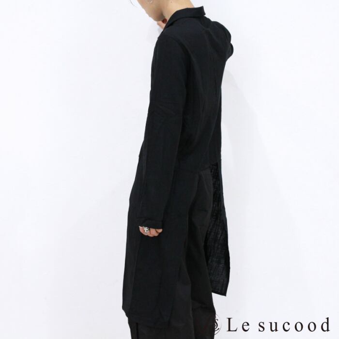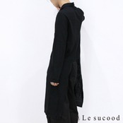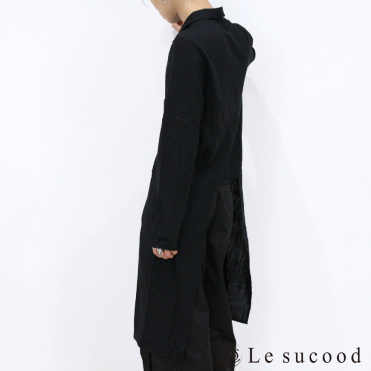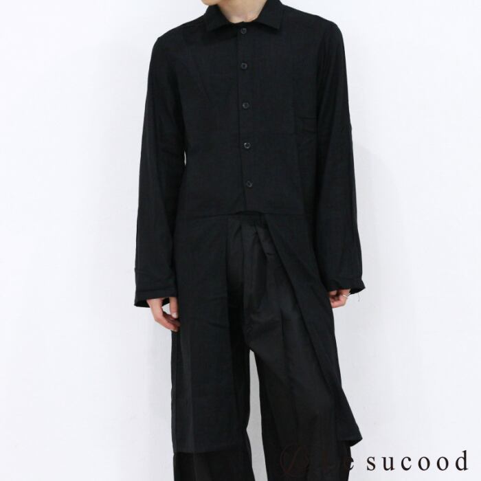 【Le sucood】【お支払い確認後20日以内発送】top050 変形ロングシャツ スリットシャツ シャツワンピース シャツワンピ 変形シャツ ビッグシルエット メンズ ユニセックス 黒 ブラック モード系 ヴィジュアル系 ルシュクード