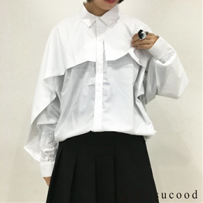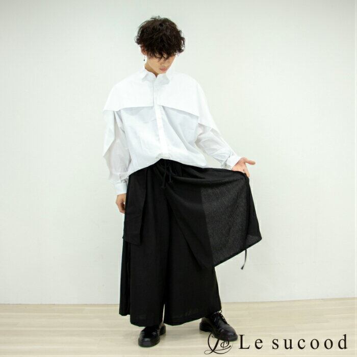 【Le sucood】top051 レイヤード付き 変形ドルマンシャツ 変形シャツ ビッグシルエット レイヤードシャツ メンズ レディース 黒 ブラック 白 ホワイト モード系 ヴィジュアル系 ルシュクード