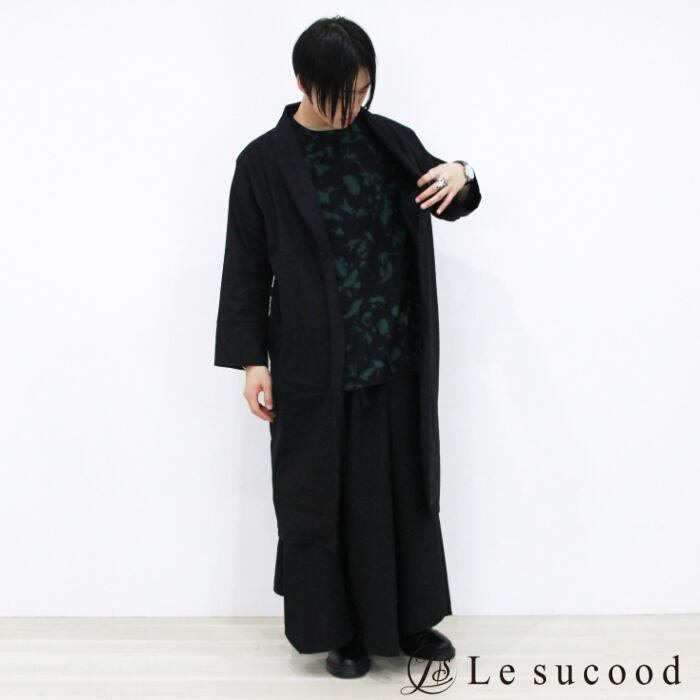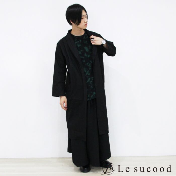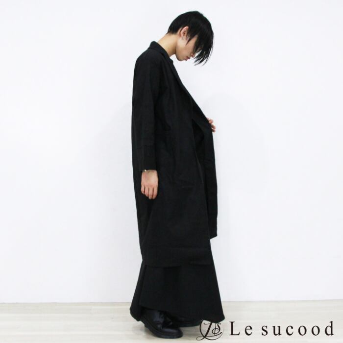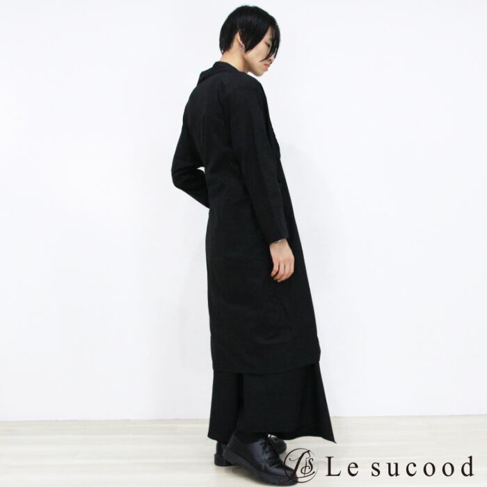 【Le sucood】【お支払い確認後20日以内発送】top054 スーパーロングジャケット 黒 ブラック テーラード 羽織 袴 はかま 春コート オーバーサイズ ビッグシルエット モード カジュアル ロング丈 春服 薄手 七分丈 ルシュクード
