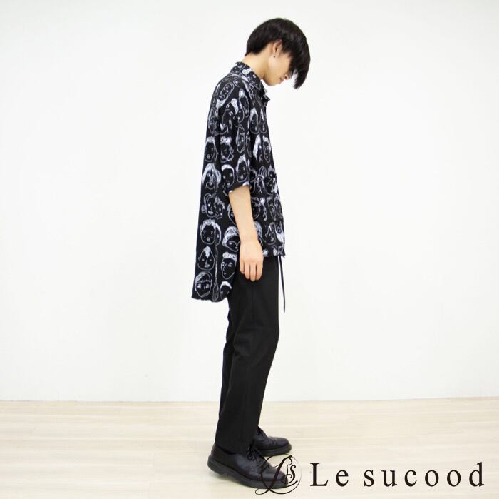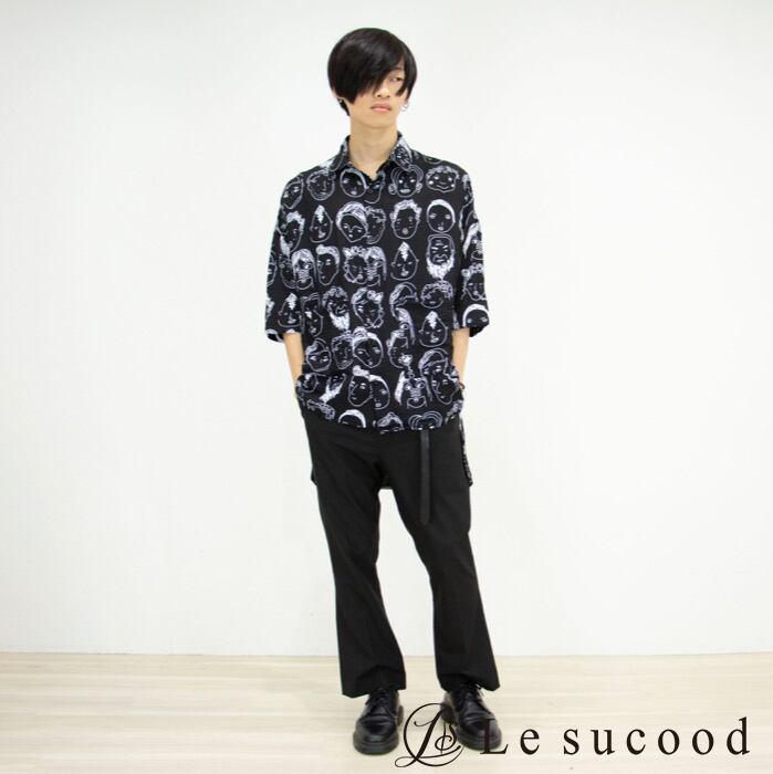【Le sucood】【お支払い確認後20日以内発送】マルチデザインシャツ 総柄 柄シャツ リーフプリント ビッグシルエット 顔柄 半袖 七分丈 夏服 カジュアル モード系 ストリート 韓国 原宿系 ユニーク リゾート 和柄 プリントシャツ ゆったり メンズ レディース 黒 白