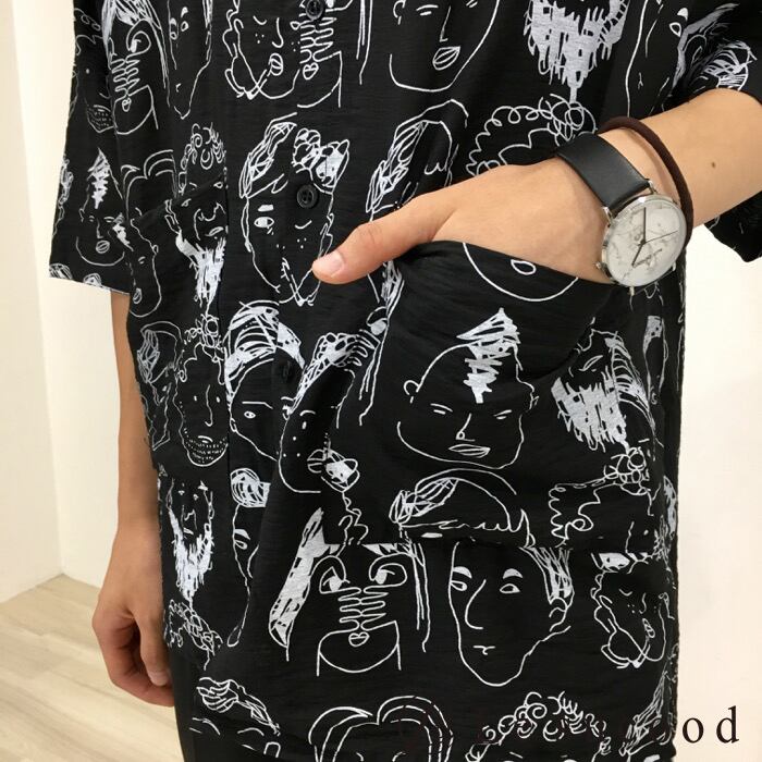 黒シャツにはランダムにユニークな顔がデザインされ、白シャツには夏にピッタリのリーフプリントがデザインされた、カラーによってデザインが異なるサマーシャツになります。
