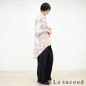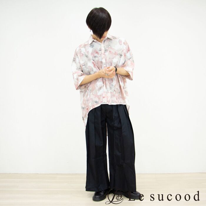 【Le sucood】【お支払い確認後20日以内発送】top065 花モザイク柄 アーチヘムシャツ 花柄 和柄 総柄 和風 リーフ柄 ロングシャツ 変形シャツ モード系 カジュアル ぼかし メンズ レディース ビッグシルエット 大きいサイズ 韓国 原宿系 和装 夏服 ピンク 七分袖 半袖
