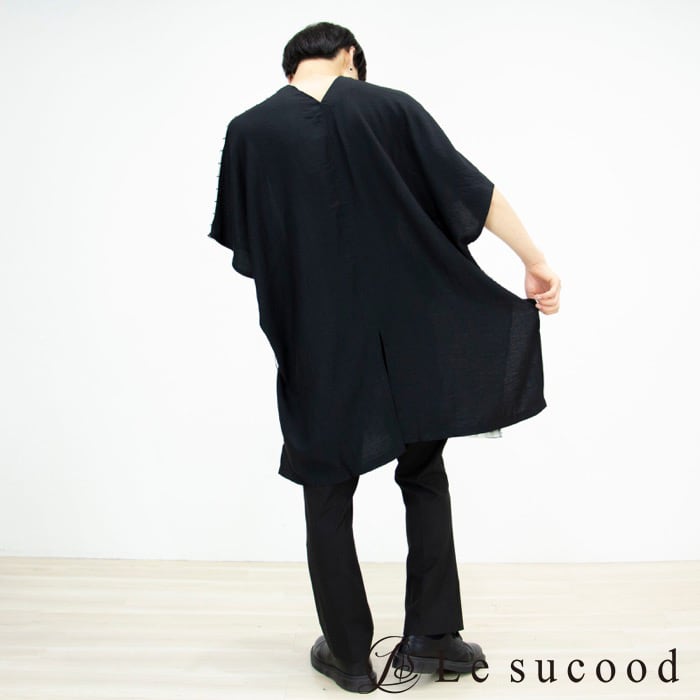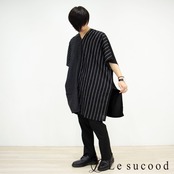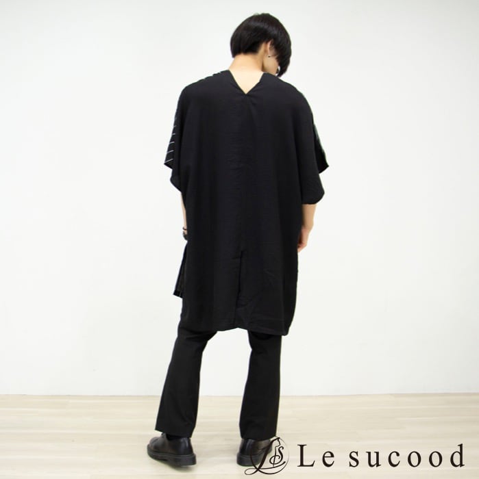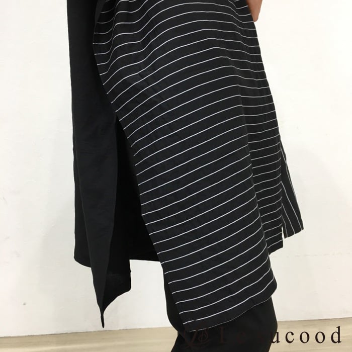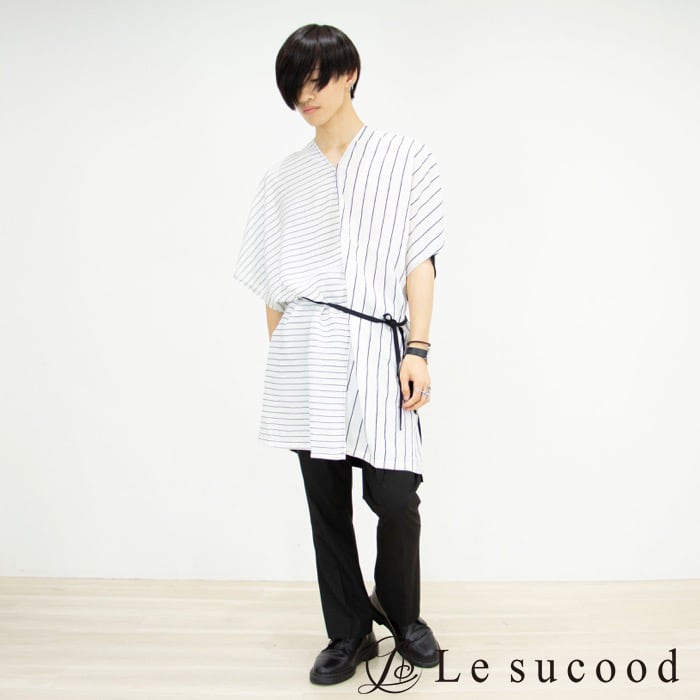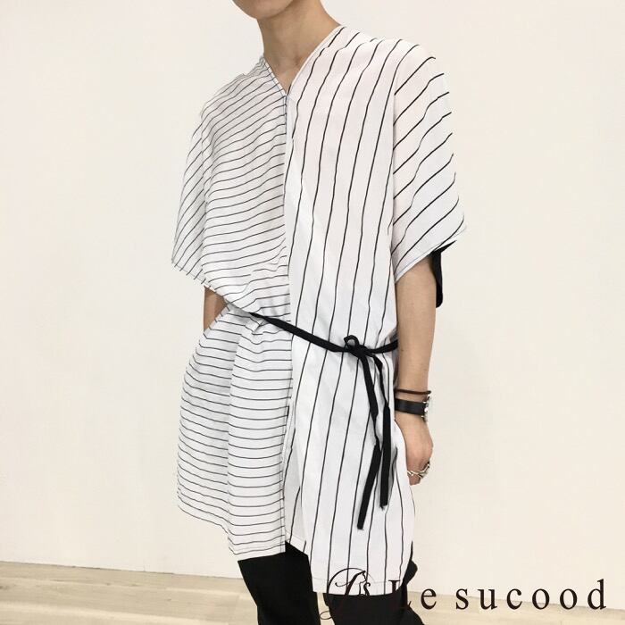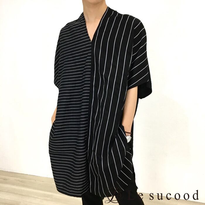 【Le sucood】【お支払い確認後20日以内発送】パッチワーク ミックスデザイン ドルマンカットソー ストライプ柄 ボーダー柄 スリット 半袖 五分袖 七分袖 メンズ レディース バイカラー 黒 白 モード系 韓国 原宿系 ビッグシルエット ゆったり トップス Tシャツ アシメ