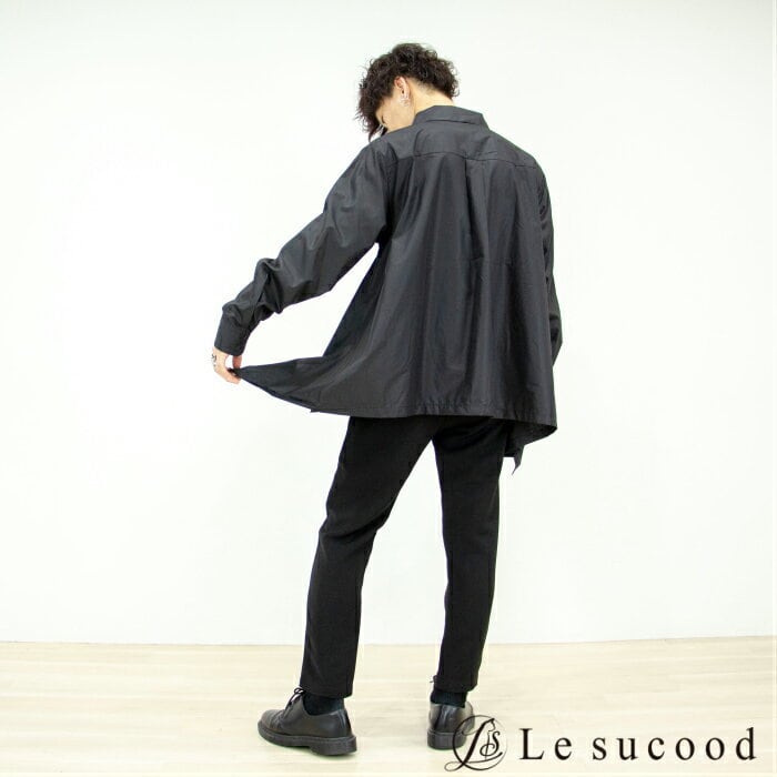 【Le sucood】【お支払い確認後20日以内発送】top085 サイドボタン付き スーパーワイド ロングシャツ 黒 白 ワイドシャツ サイドスリット 変形シャツ 無地 メンズ レディース 大きいサイズ ビッグシルエット ゆったり オーバーサイズ 韓国 原宿系 秋服 冬服 カジュアル オシャレ