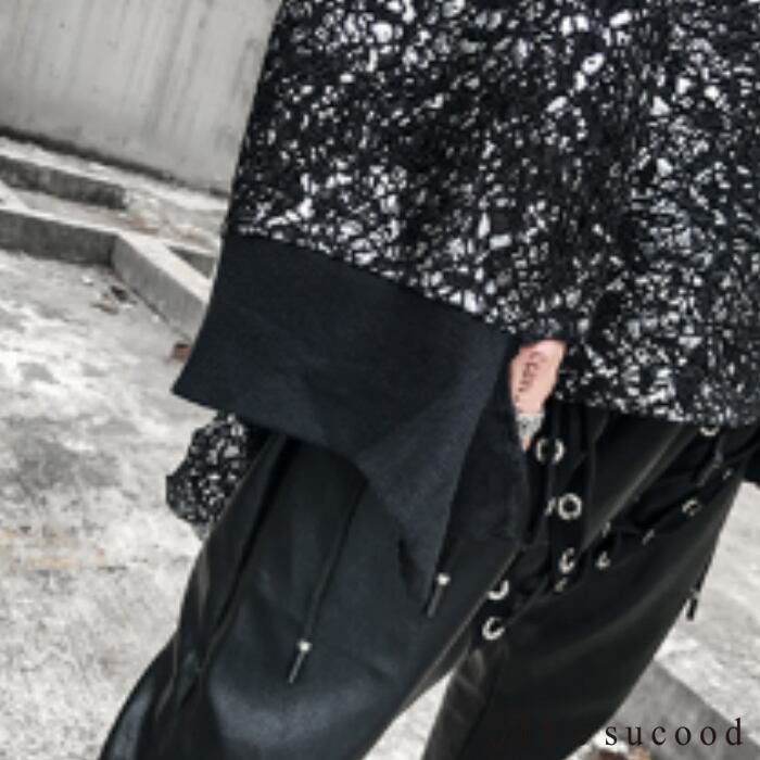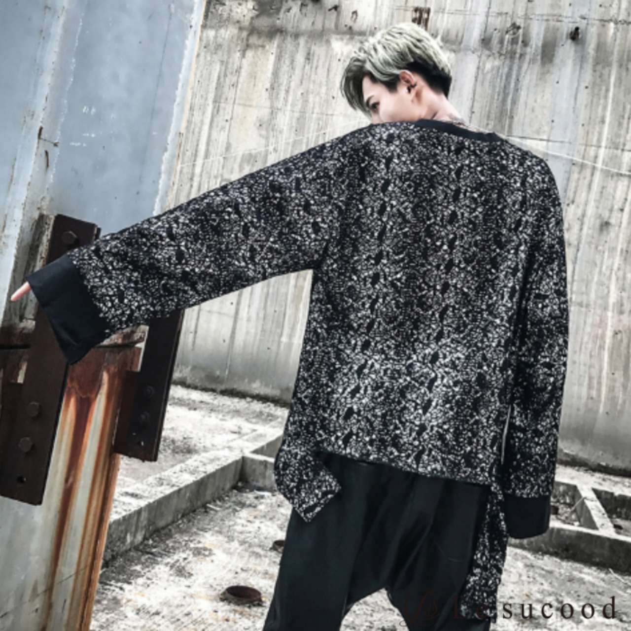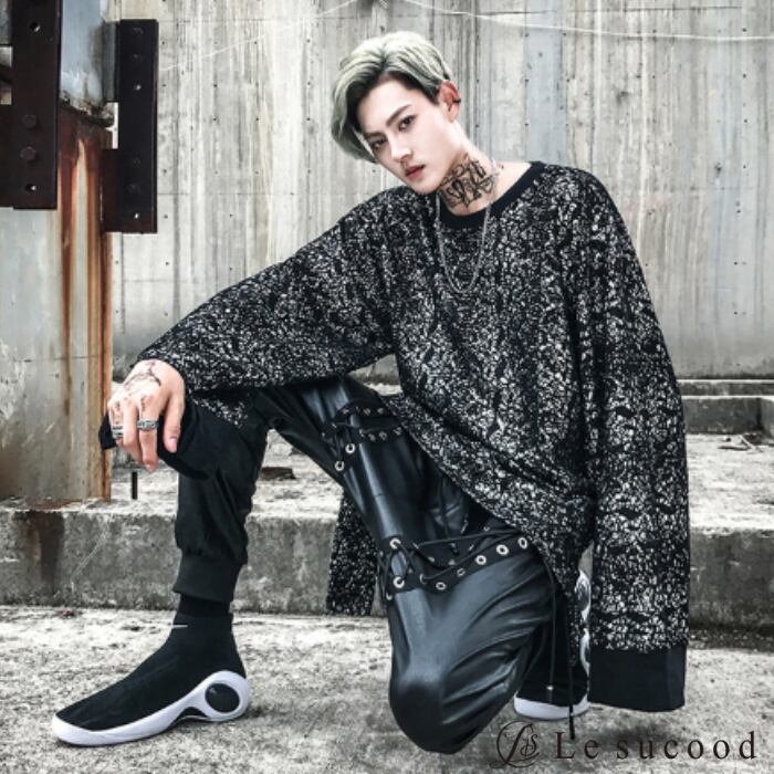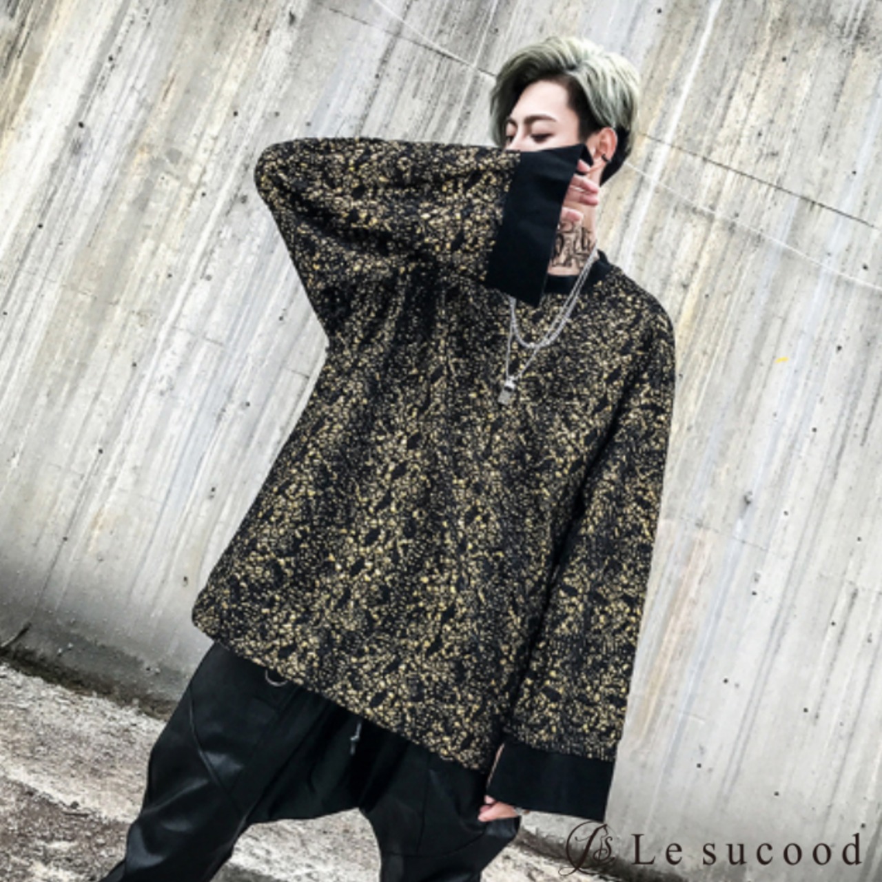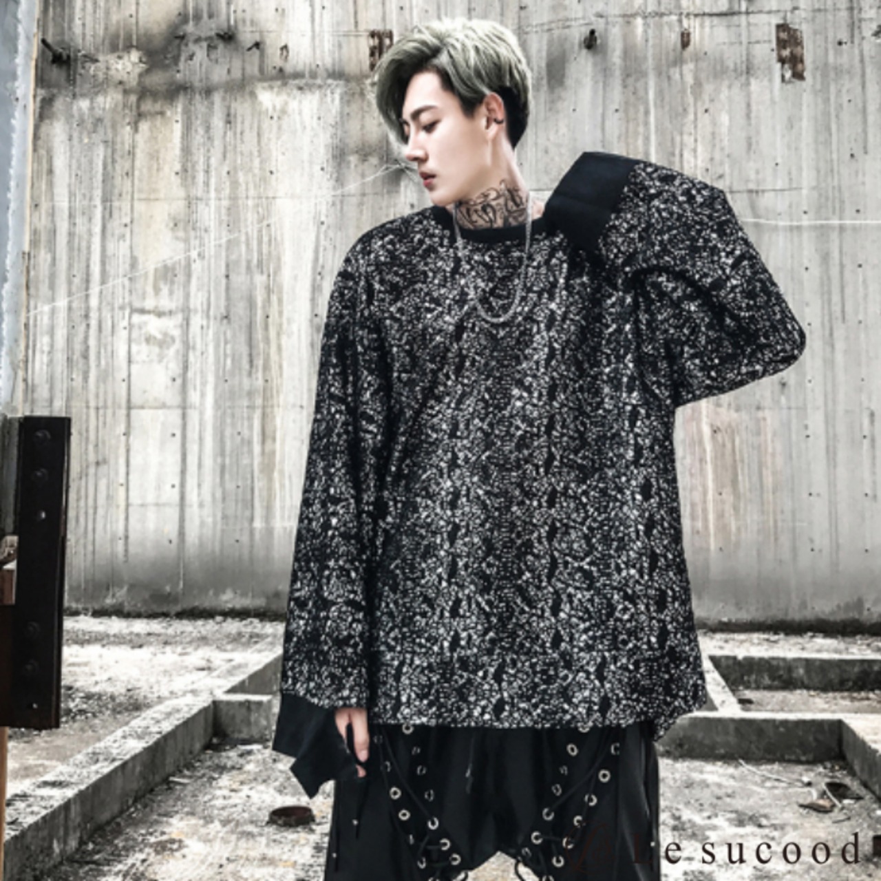 【Le sucood】【お支払い確認後20日以内発送】top087 カットオフ ルーズシルエット トレーナー ブラック ゴールド シルバー メッシュ モード系 V系 お兄系 韓国 ビッグシルエット オーバーサイズ ニット セーター メンズ トレーナー ゆったり ダメージ