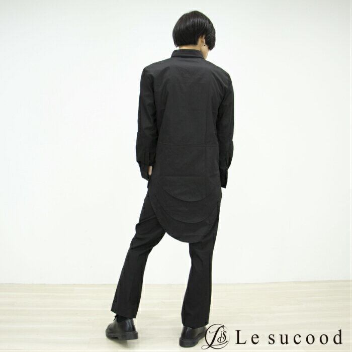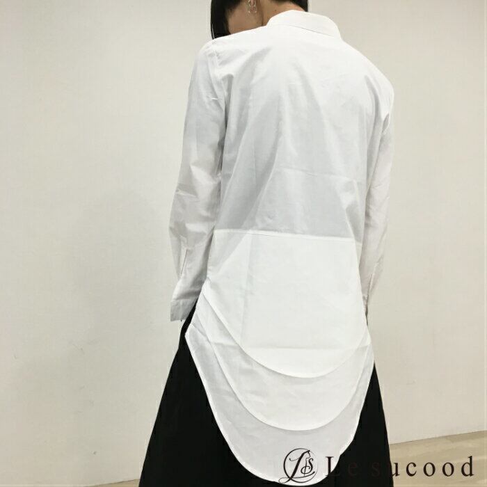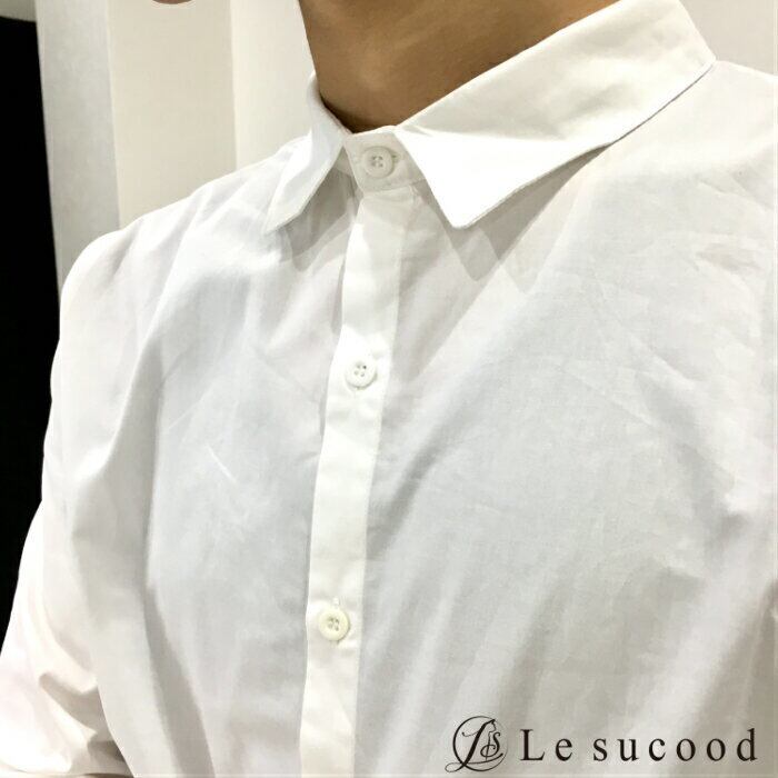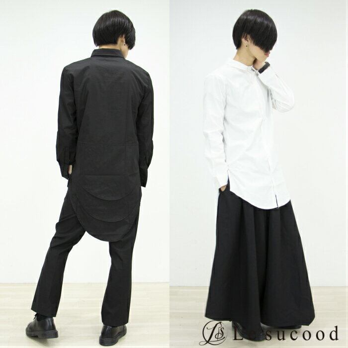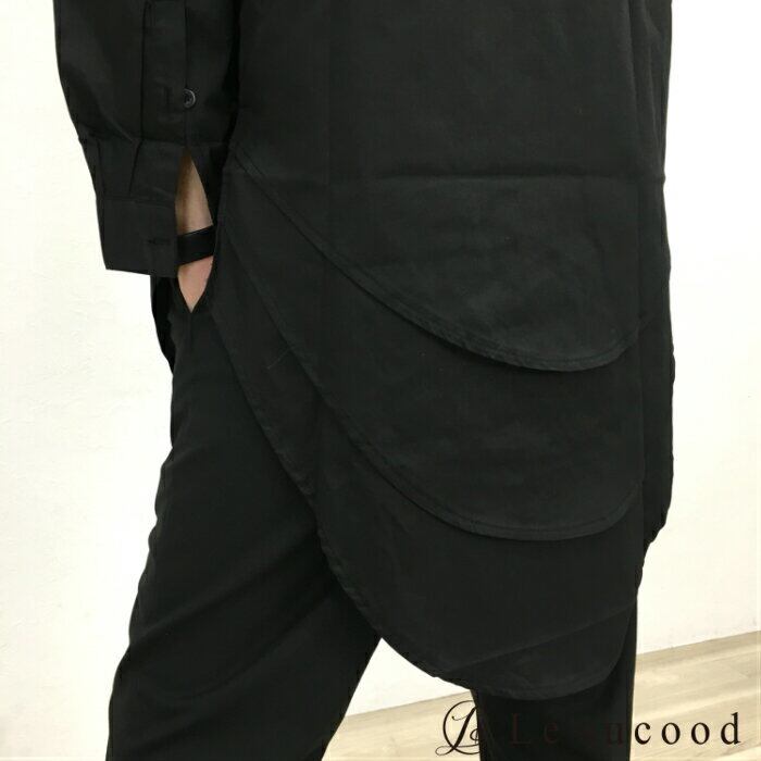 【Le sucood】【お支払い確認後20日以内発送】top089 フェイクレイヤード ディープスリット ロングシャツ 白 黒 サイドスリット 長袖 変形シャツ メンズ レディース 裾変形 秋服 冬服 トップス モード系 V系 きれいめ カジュアル スリム 韓国ファッション