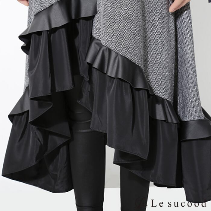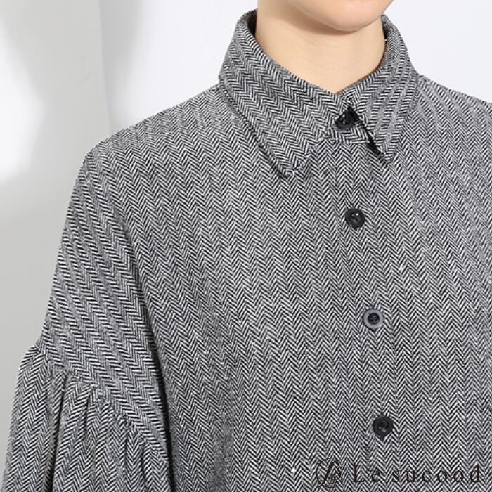 【Le sucood】top099 フィッシュテール フレアシャツワンピース グレー レディース シャツワンピ ロングワンピ モード系 ゴシック フレアワンピ マキシ丈 シフォンワンピース 大人 きれいめ リボン ワイド オーバーサイズ オシャレ | Le sucood