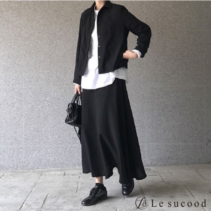 【Le sucood】【お支払い確認後20日以内発送】top111 サイドポケット付き ロングスリーブシャツ レディース モード系 ショート丈 長袖 上品 オシャレ ゴシック 羽織 ロングシャツ きれいめ 大人 カジュアル 黒 ブラック トップス 個性的 ブラウス
