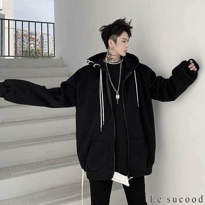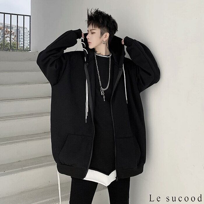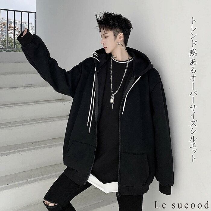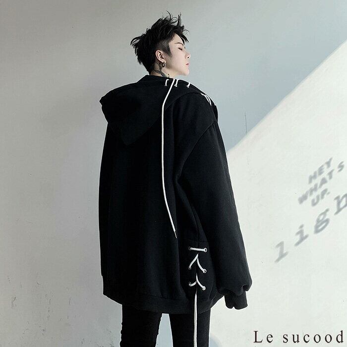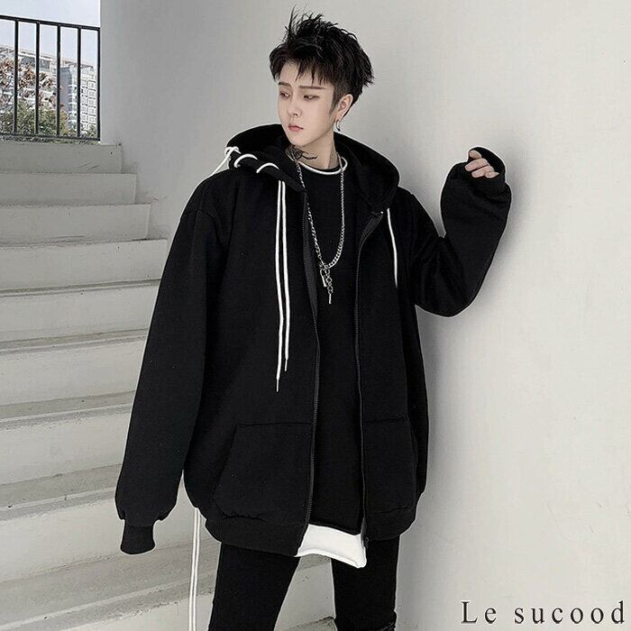 【お支払い確認後20日以内発送】Le sucood 編みこみフード パーカー ジャケット メンズ モード系 ビッグシルエット デザインパーカー オーバーサイズパーカー オーバーサイズシルエット ジップアップパーカー 編みフードパーカー 長袖 フーディー ゆったり ストリート系 サロン系 個性的 原宿系