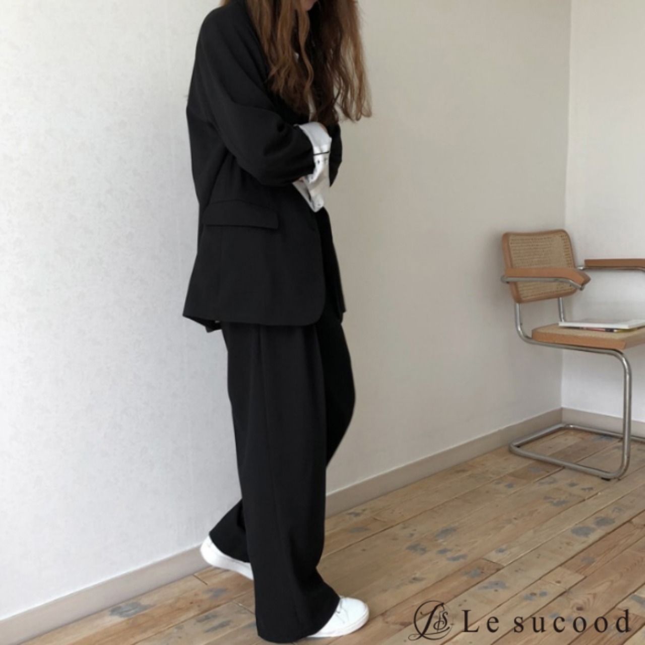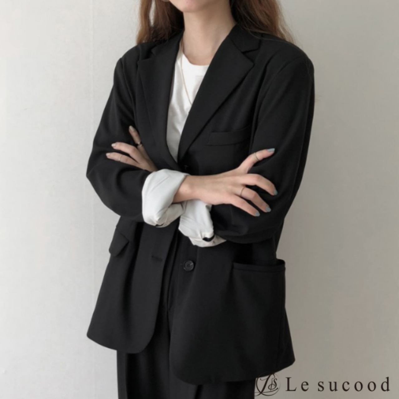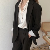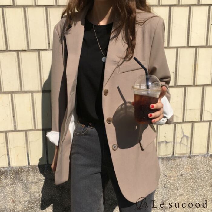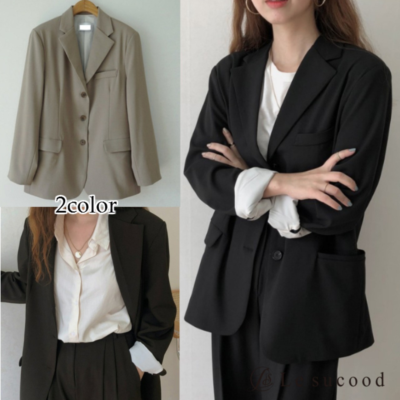 【Le sucood】【お支払い確認後20日以内発送】out018 ミドル丈 ダブルテーラードジャケット レディース ブラック ベージュ モード系 セットアップ ジャケット スーツ フォーマル きれいめ ブレザー シンプル 長袖 秋服 冬服 大人 ロングジャケット