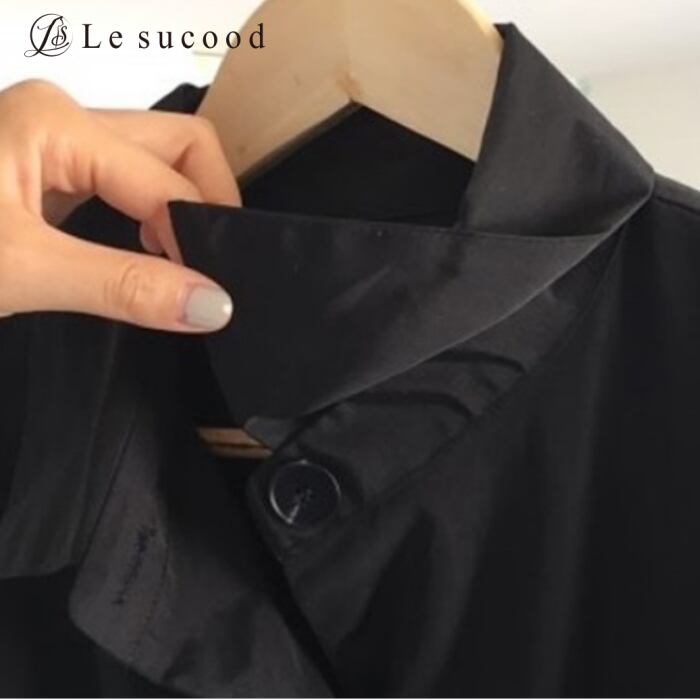 【Le sucood】【お支払い確認後20日以内発送】out025 シャツモチーフ ロングコート 黒 レディース ロング丈 シャツワンピース きれいめ モード系 大きいサイズ ロングワンピース ジャケット ロングシャツ シャツワンピ アウター 大人 コクーン マキシ丈 韓国 カジュアル ゴシック