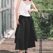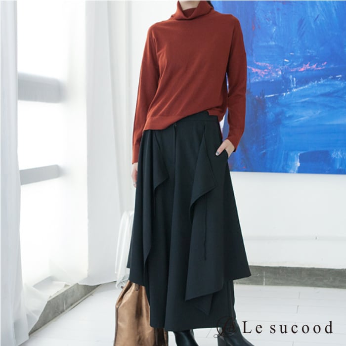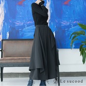 変形ドレープ付きロングスカートをドッキングさせたワイドパンツです。