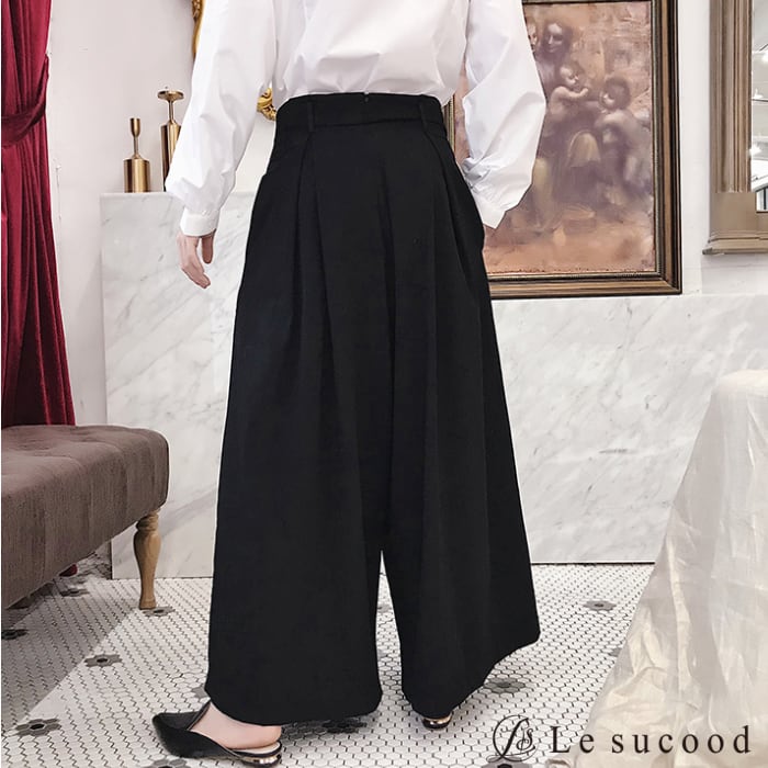 【Le sucood】【お支払い確認後20日以内発送】リボンコード付き マキシ丈 袴パンツ メンズ ドレープ スカンツ ガウチョ ワイドパンツ スカート モード系 レディース ユニセックス 黒 ブラック 白 ホワイト 個性的 ゴシック 大きいサイズ ビッグシルエット ゆったり はかま