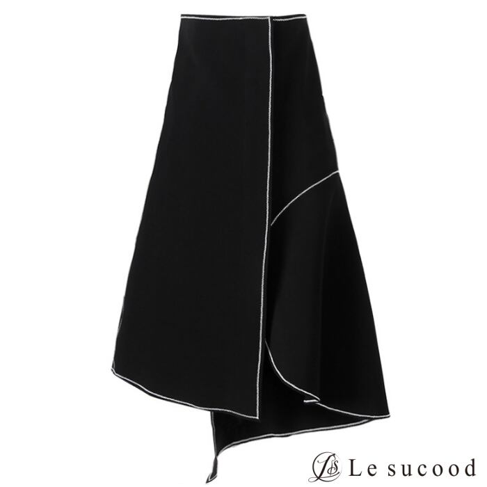 【Le sucood】【お支払い確認後20日以内発送】btm044 サイドステッチ アシンメトリー ロングスカート レディース 黒 ブラック ドレープ 巻きスカート アシメ 変形 Aライン スカート モード系 ゴシック きれいめ 個性的 フレア メンズ ユニセックス 上品 アシンメトリー マキシスカート ロング丈
