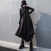 大胆なカッティングと繊細な雰囲気のジャンパースカートです。
