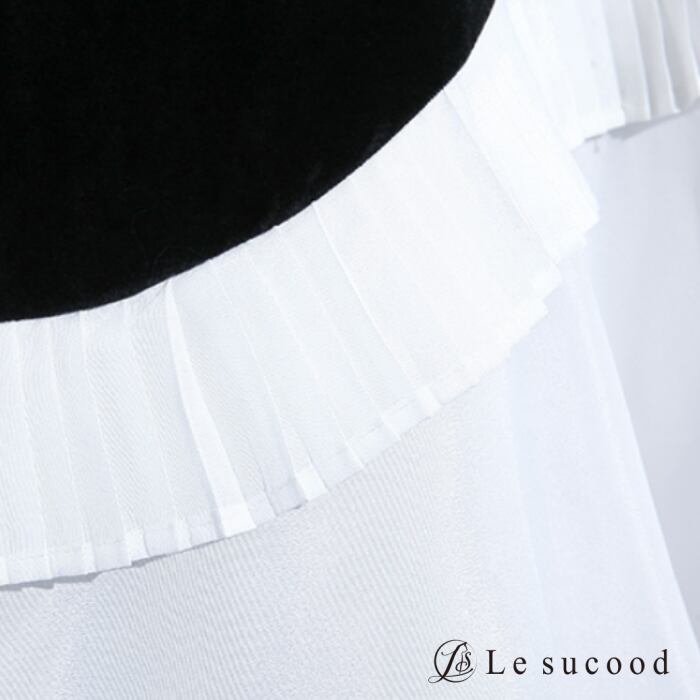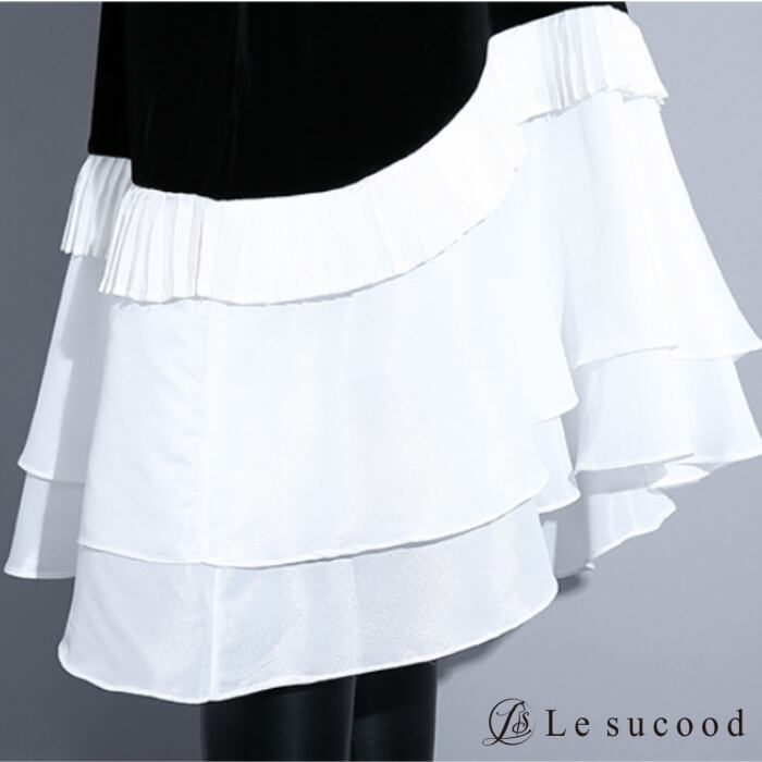 【Le sucood】【お支払い確認後20日以内発送】top164 シェルティアード ドッキング ワンピース ベルベット バイカラー ワンピ プリーツ スカート フレア フリル ミモレ丈 ひざ丈 ドルマン ドレープ ベロア モード系 ゴシック レディース ビッグサイズ 韓国 原宿系