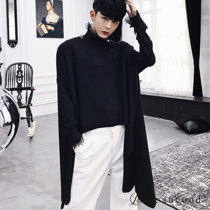 【Le sucood】【お支払い確認後20日以内発送】top183 アーチヘム ポンチョ風 アシンメトリー ドルマン トレーナー プルオーバー メンズ レディース ユニセックス 白 ホワイト 黒 ブラック モード系 ゴシック 個性的 韓国 ドレープ ビッグシルエット オーバーサイズ マント