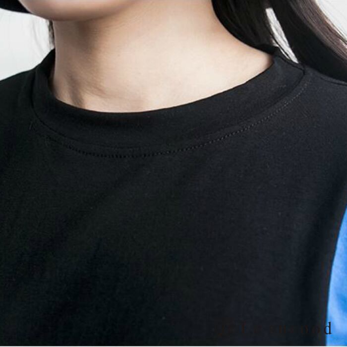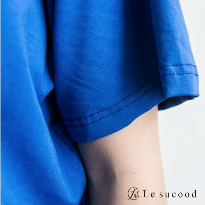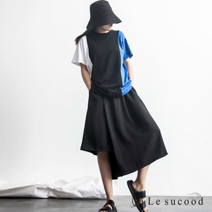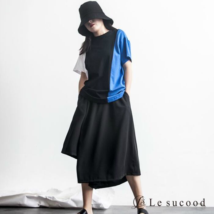【Le sucood】【お支払い確認後20日以内発送】top189 トリプルカラー ドルマン カットソー レディース ユニセックス Tシャツ 半袖 七分袖 モード系 ゴシック 原宿系 黒 ブラック 白 ホワイト 青 ブルー パッチワーク バイカラー 変形 ロング丈 クールネック ラウンドネック