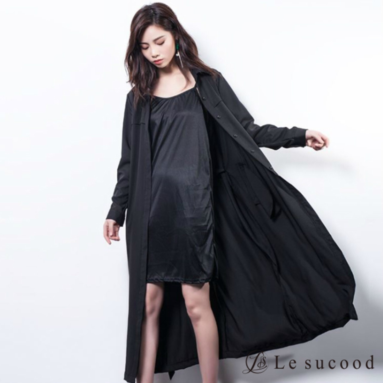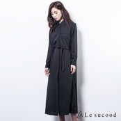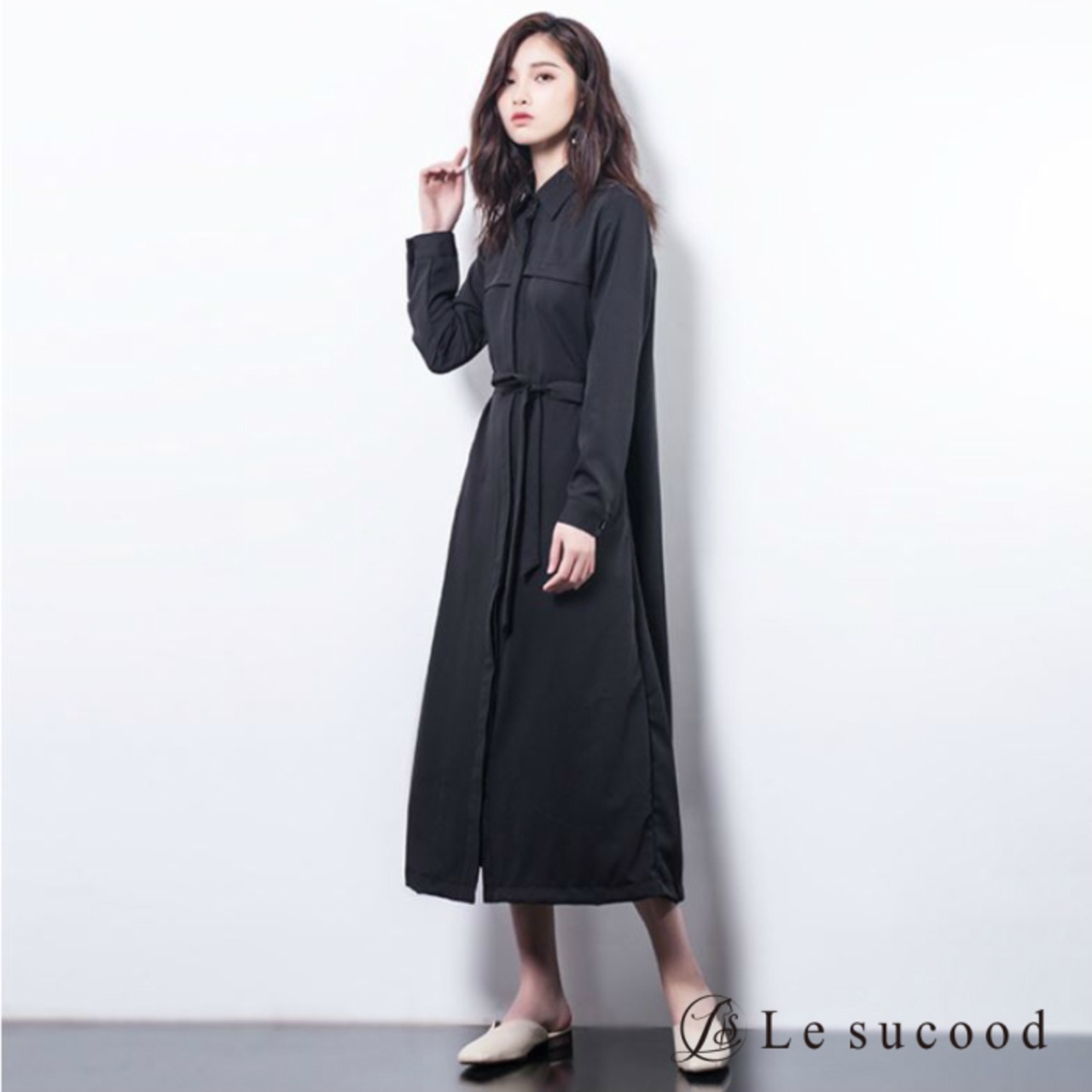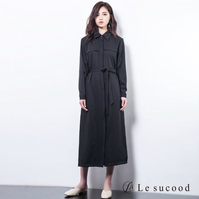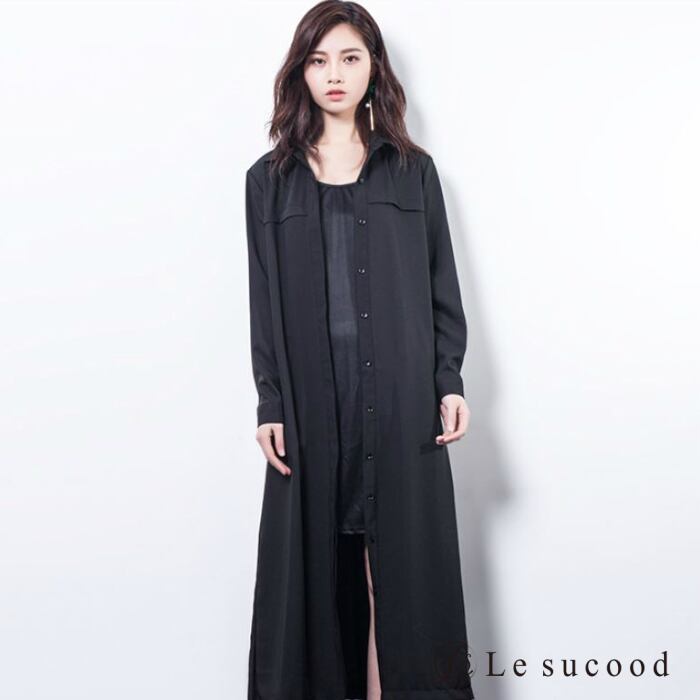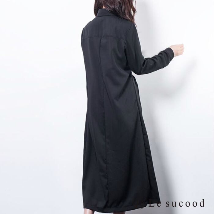 【Le sucood】【お支払い確認後20日以内発送】top199 ロングシャツワンピース ロング丈 モード系 ワントーン 黒 レディース マキシ丈ワンピ 大人女子 かわいい ゴシック 韓国 無地 羽織 長袖