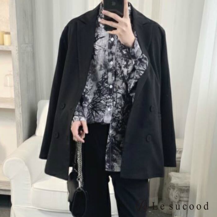 【Le sucood】【お支払い確認後20日以内発送】 リーフプリントデザインシャツ サマーシャツ 花柄シャツ モード系 メンズ 個性的 長袖 アロハシャツ ボタニカル柄 カジュアル ストリート系 原宿系