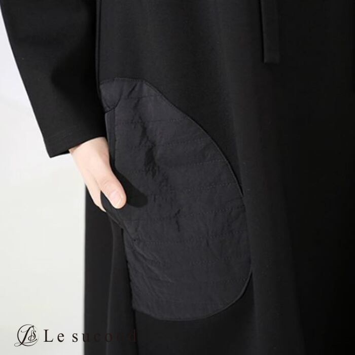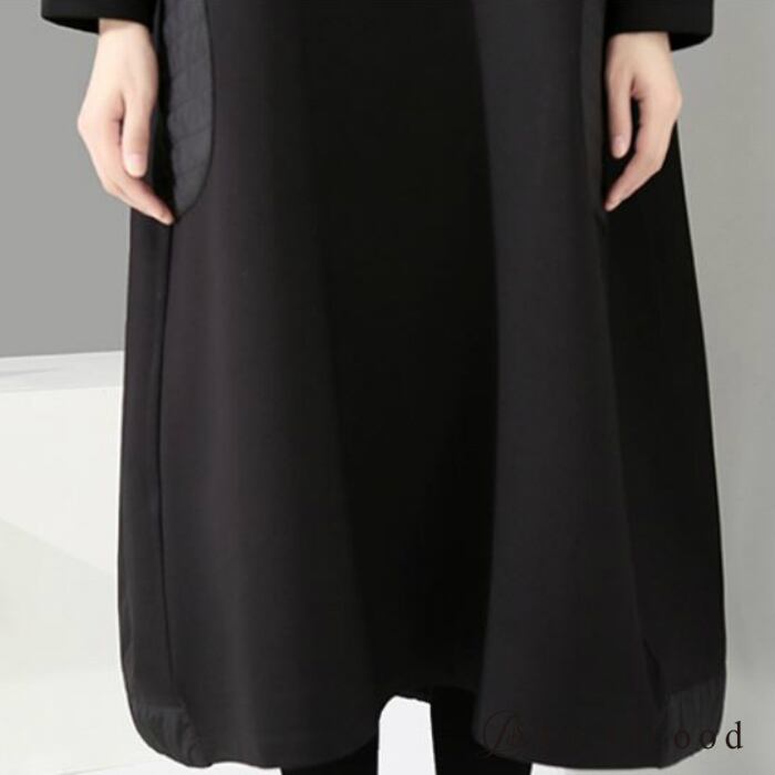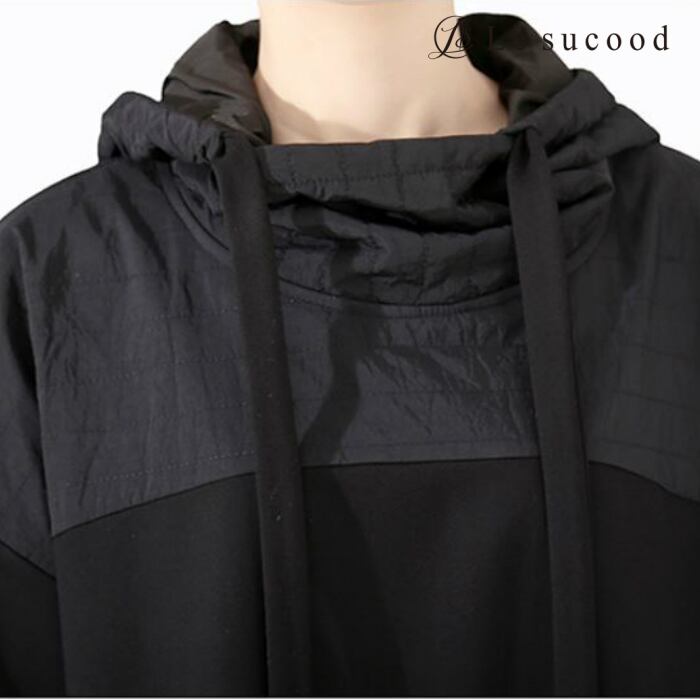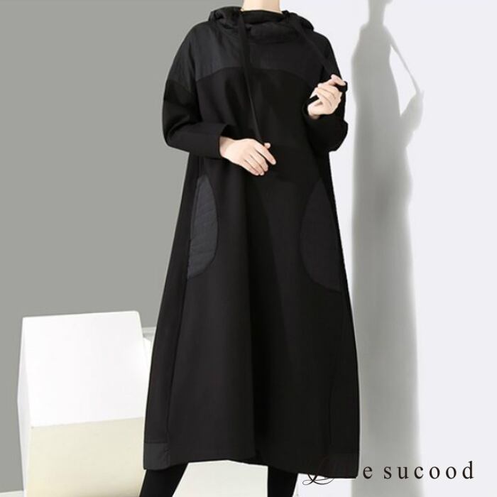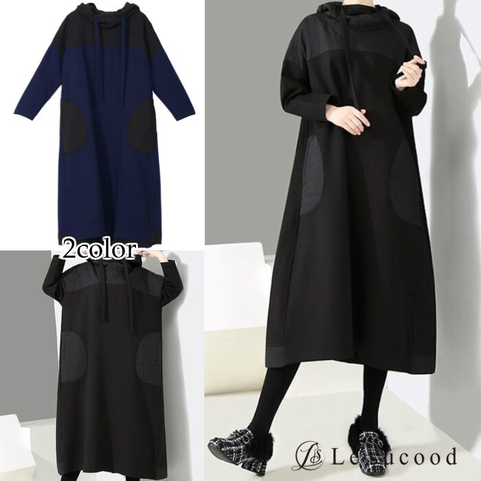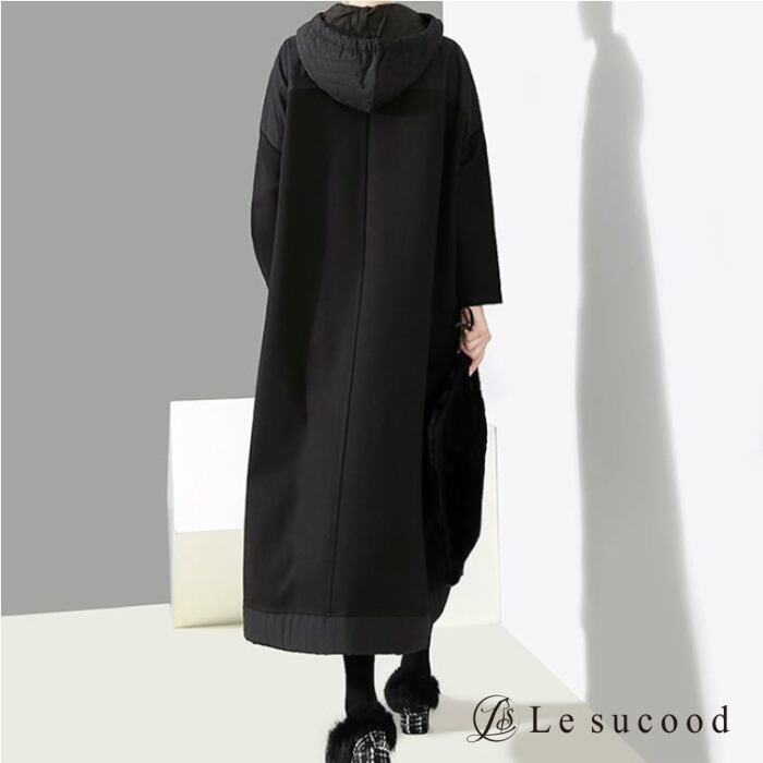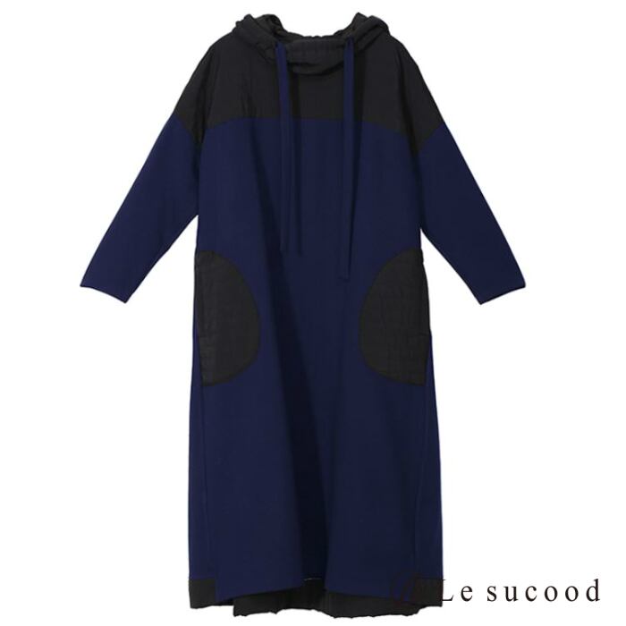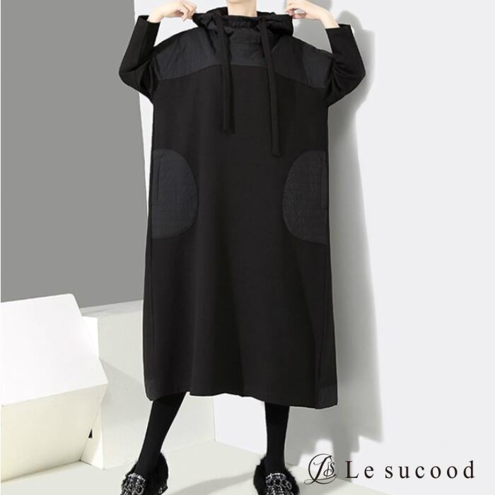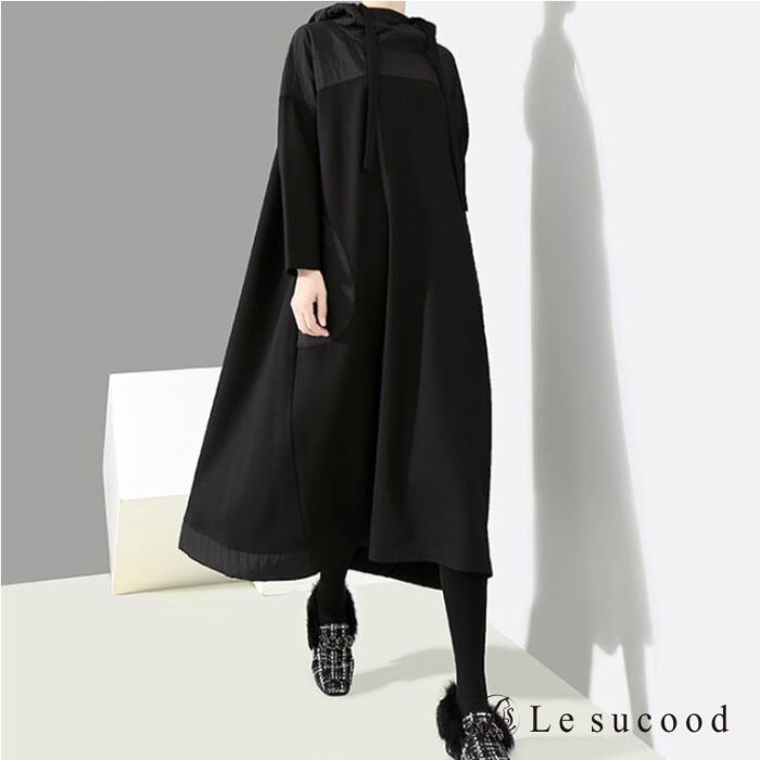 【Le sucood】【お支払い確認後20日以内発送】top192 異素材フード バイカラー ロングパーカー パーカーワンピース ドルマン レディース ユニセックス ビッグシルエット ビッグサイズ モード系 ゴシック 黒 ブラック グレー トレーナー スウェット パーカー ポンチョ