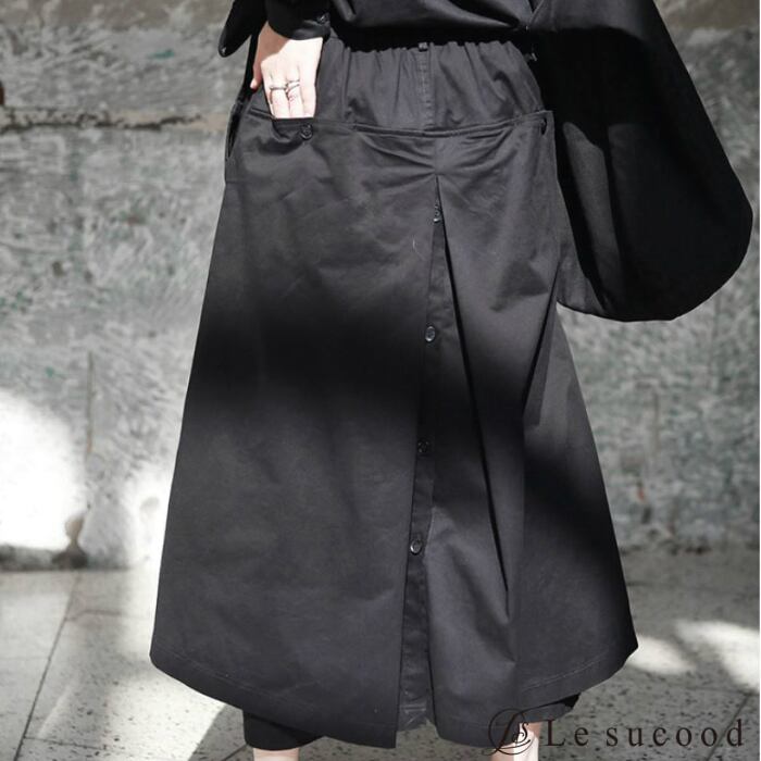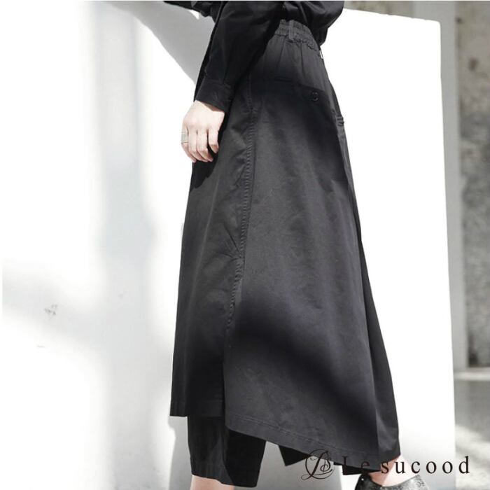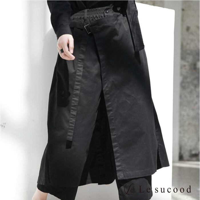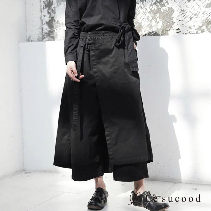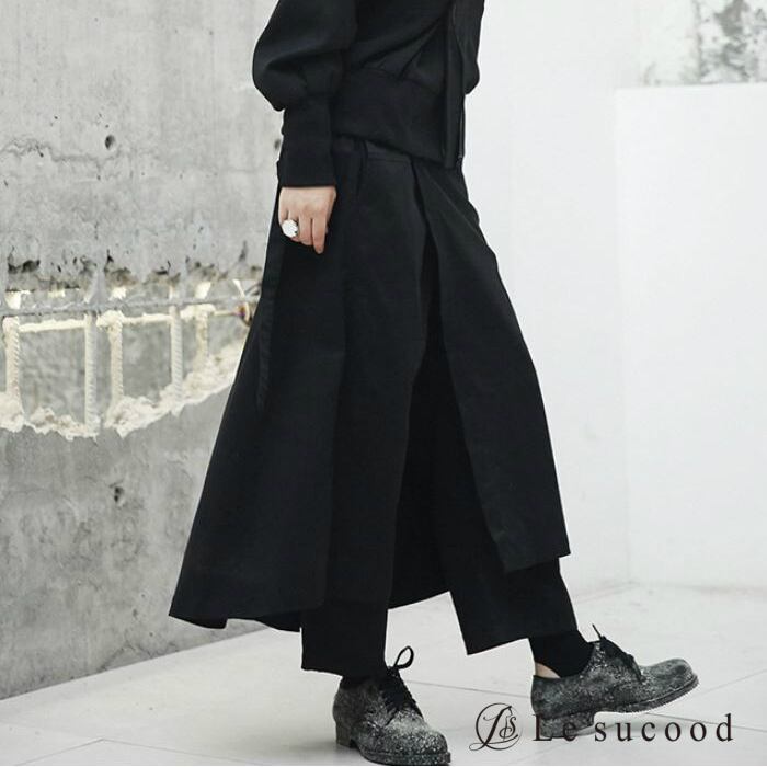 【Le sucood】【お支払い確認後20日以内発送】btm049 レイヤードパンツ アシンメトリーパンツ サロン系パンツ 重ね着デザイン 変形 黒 ブラック ラップパンツ モード ストリート ルシュクード
