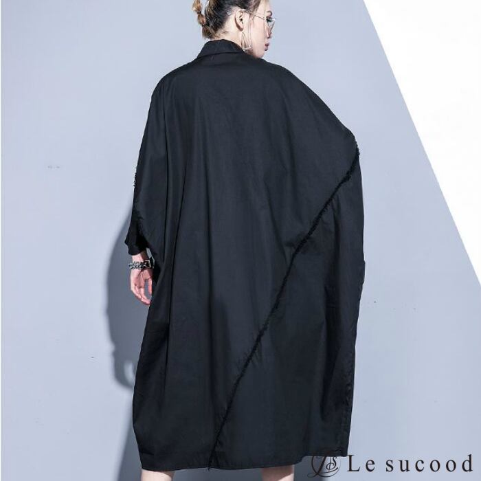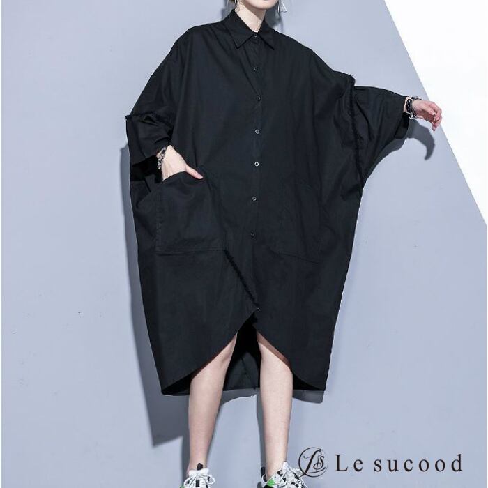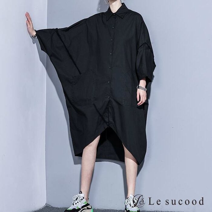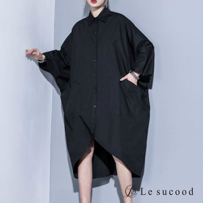 【Le sucood】【お支払い確認後20日以内発送】top230 ドロップショルダーシャツ ドルマン アシメ 変形 オーバーシャツ オーバーサイズ オーバーサイズ 黒 白 メンズ レディース ビッグシャツ ビッグシルエット モード系 韓国 原宿系 ロック オフショル 大きいサイズ ゆったり