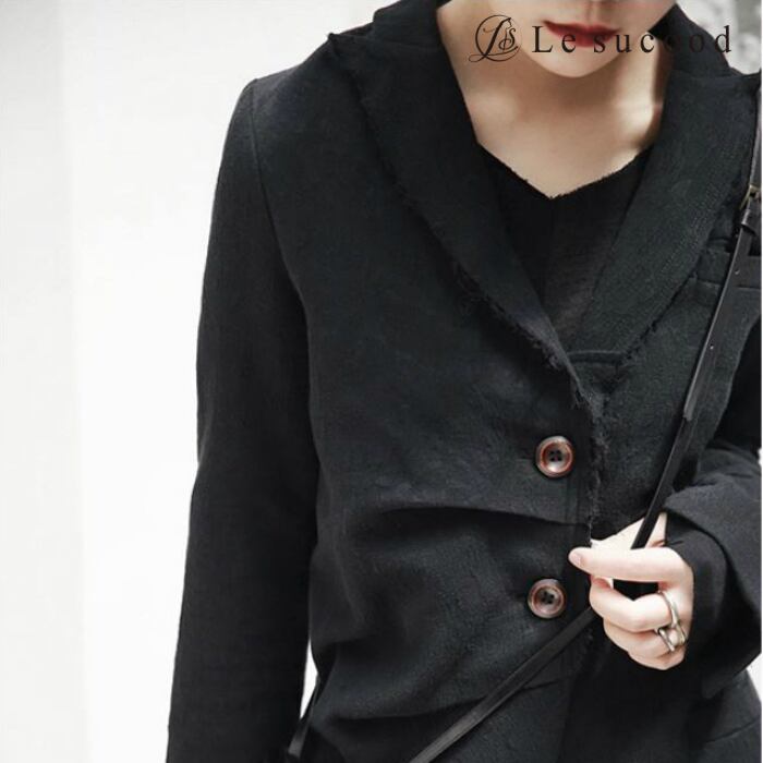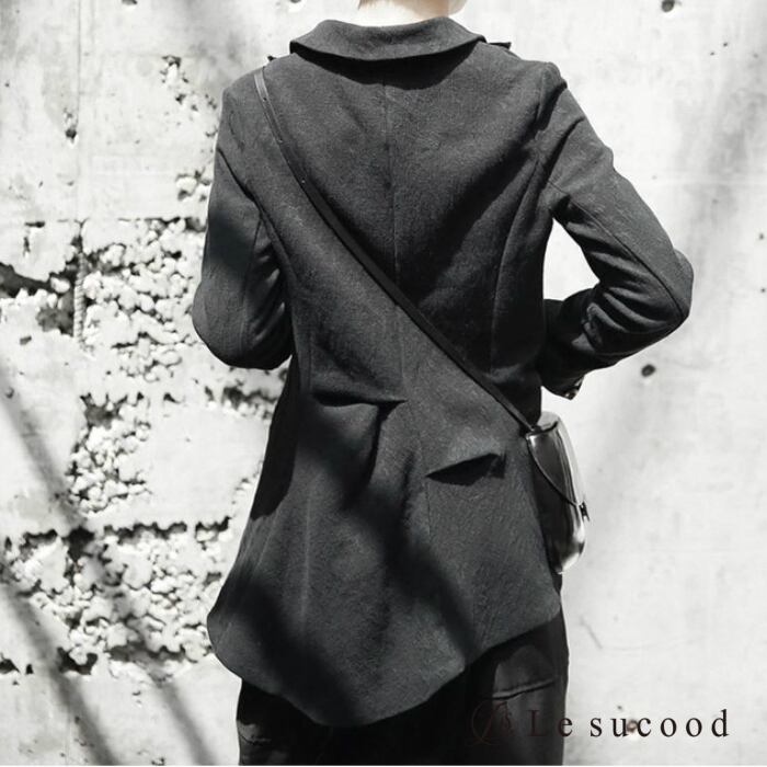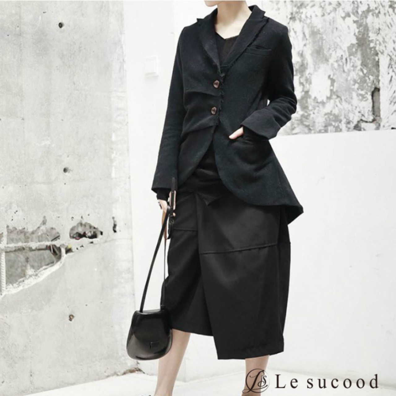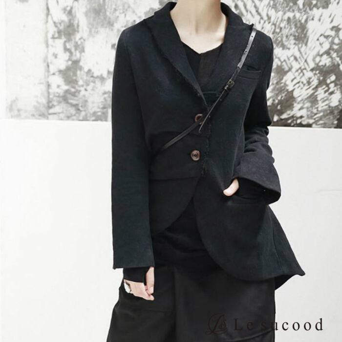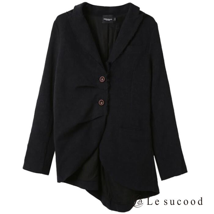 【Le sucood】【お支払い確認後20日以内発送】out057 長袖アシンメトリージャケット 変形 デザイン ブラック 黒 カジュアル モード ゴシック ゴスロリ レディース アシメ 個性的 羽織 アウター 無地 ワントーン