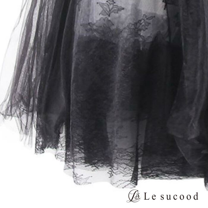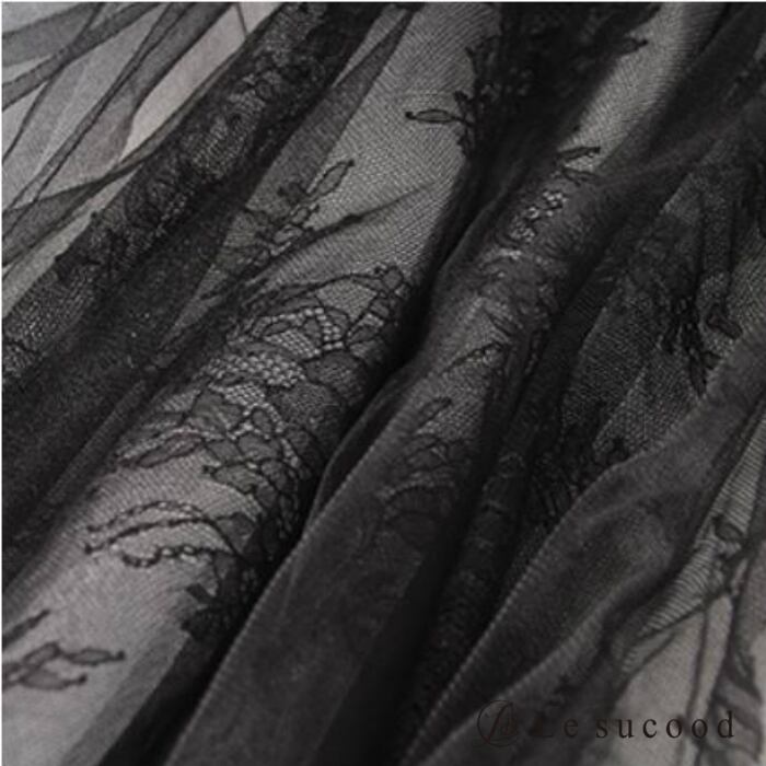 【Le sucood】【お支払い確認後20日以内発送】btm086 シースルーロングスカート チュールスカート 花柄 フレア シフォン レース ブラック 黒 モード ゴシック ゴスロリ 韓国 ストリート きれいめ | Le sucood