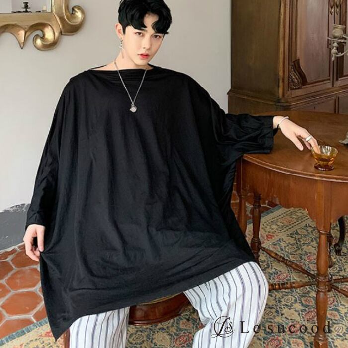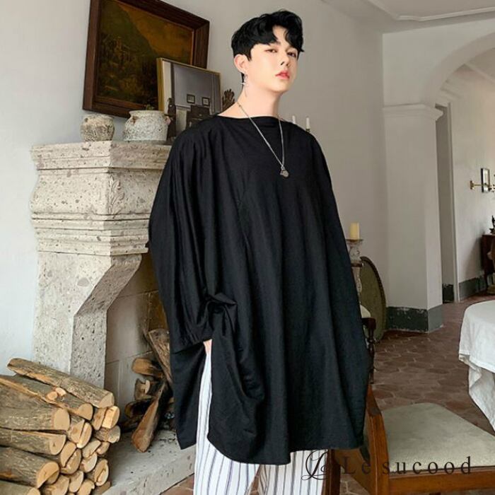 【Le sucood】【お支払い確認後20日以内発送】 ビッグドルマンT ドルマン ビックシルエット Tシャツ ドロップショルダー ビッグT ロング丈 無地 ゆったり 韓国 モード系 ストリート系 サロン系