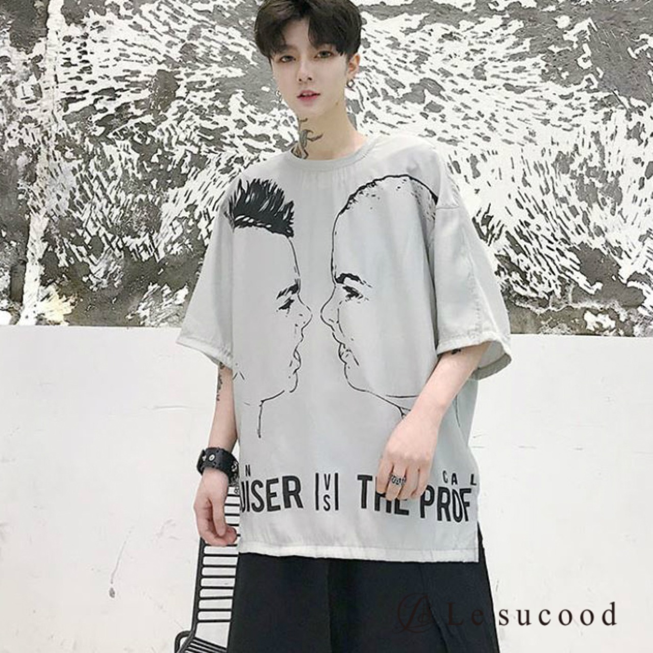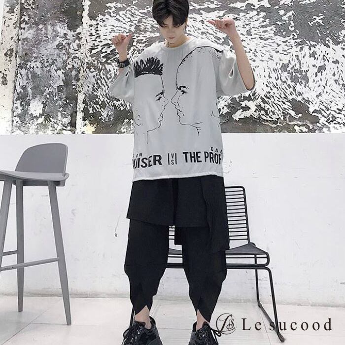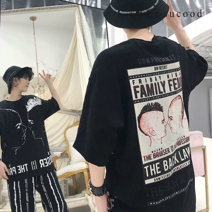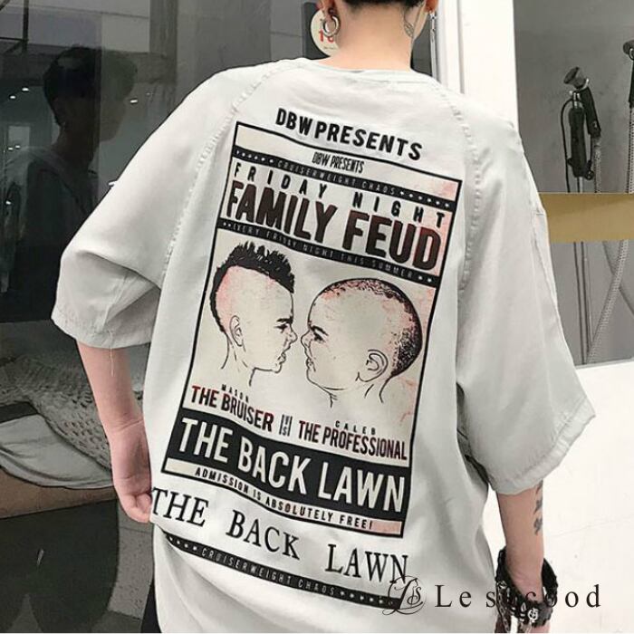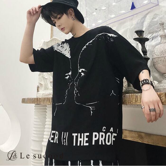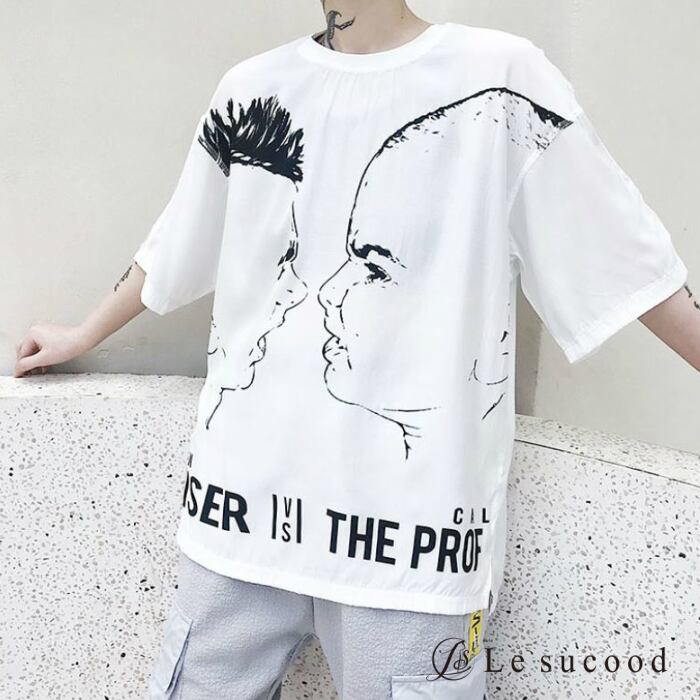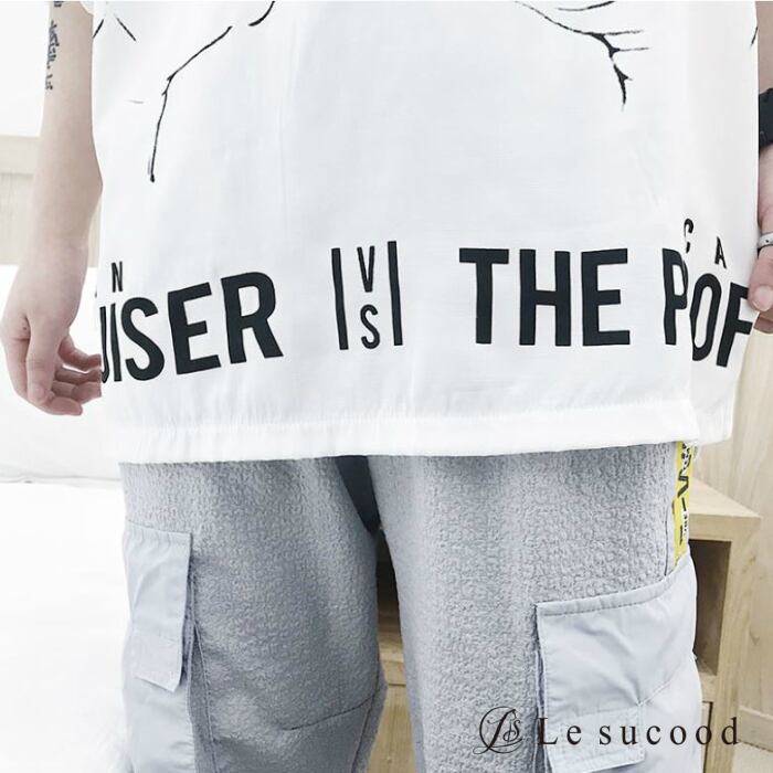 【Le sucood】【お支払い確認後20日以内発送】top234 半袖プリントTシャツ ビッグシルエット ロゴ クルーネック アメカジ tシャツ メンズ 半袖 プリント カジュアル モード ストリート ゆったり 大きめ ブラック ホワイト グレー 黒 白