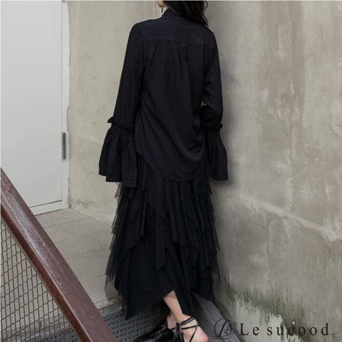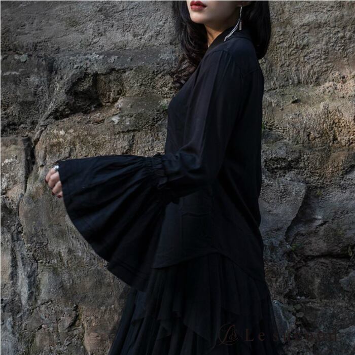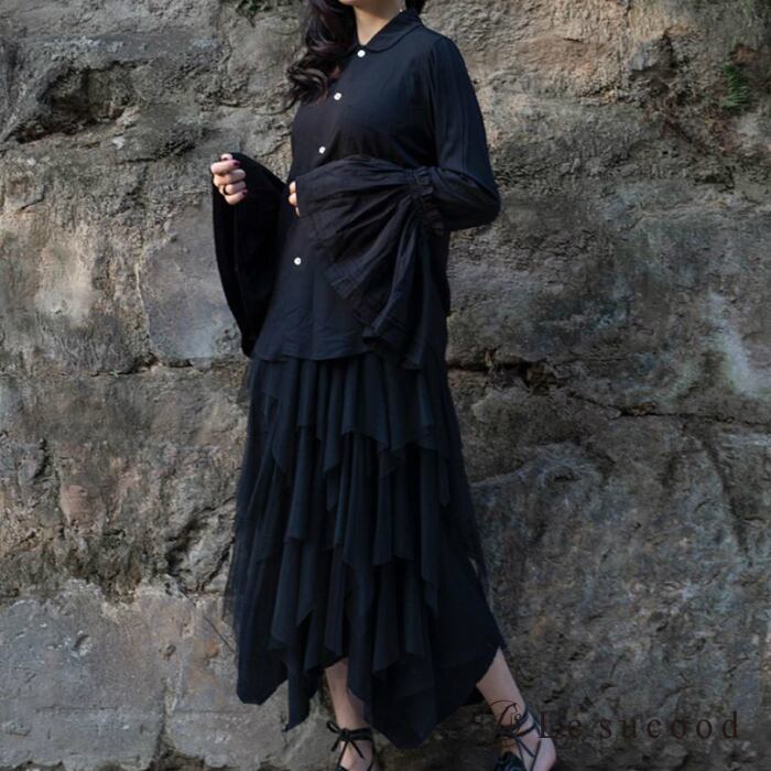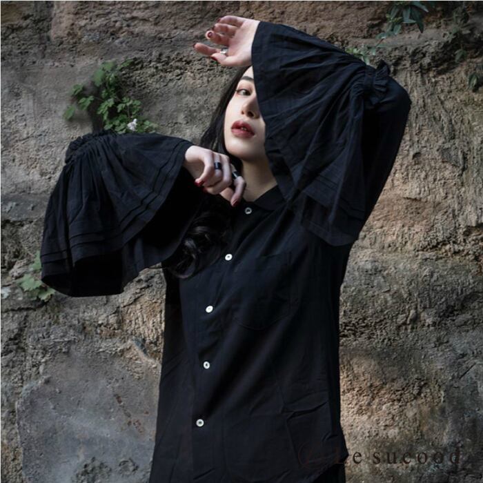 【Le sucood】【お支払い確認後20日以内発送】top236 盛り袖ブラウス 袖コンシャス トレンド トップス シャツ モード ストリート 大人可愛い きれいめ レディース ブラック 黒 フェミニン