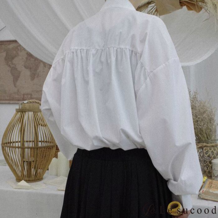 【Le sucood】【お支払い確認後20日以内発送】top237 変形ビッグシャツ ドロップショルダー ドレープ モード カジュアル ストリート系 韓国 ファッション 新作 メンズファッション 個性的 黒 白