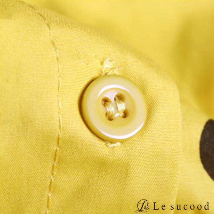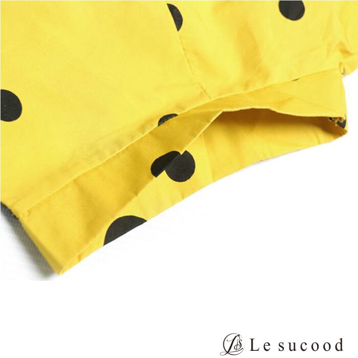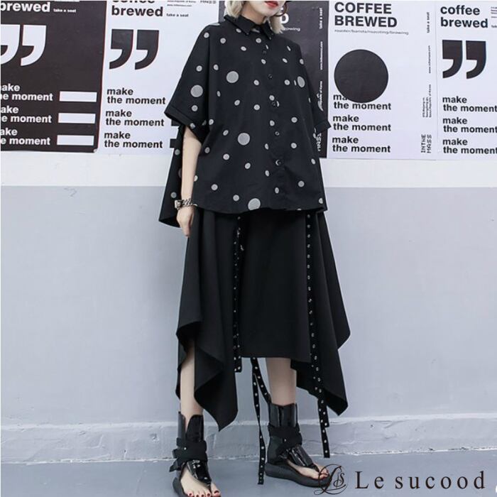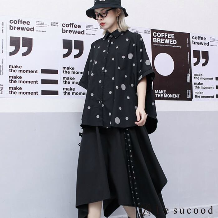 【Le sucood】【お支払い確認後20日以内発送】ドットワイドシャツ ブラウス トップス ビッグシルエット ゆったり レディース 体型カバー 大きい ストリート カジュアル モード 通勤 フェミニン 大人 可愛い ブラウスシャツ ブラック イエロー 黒 黄