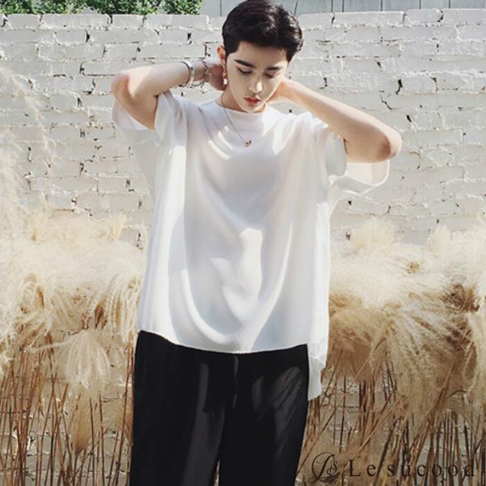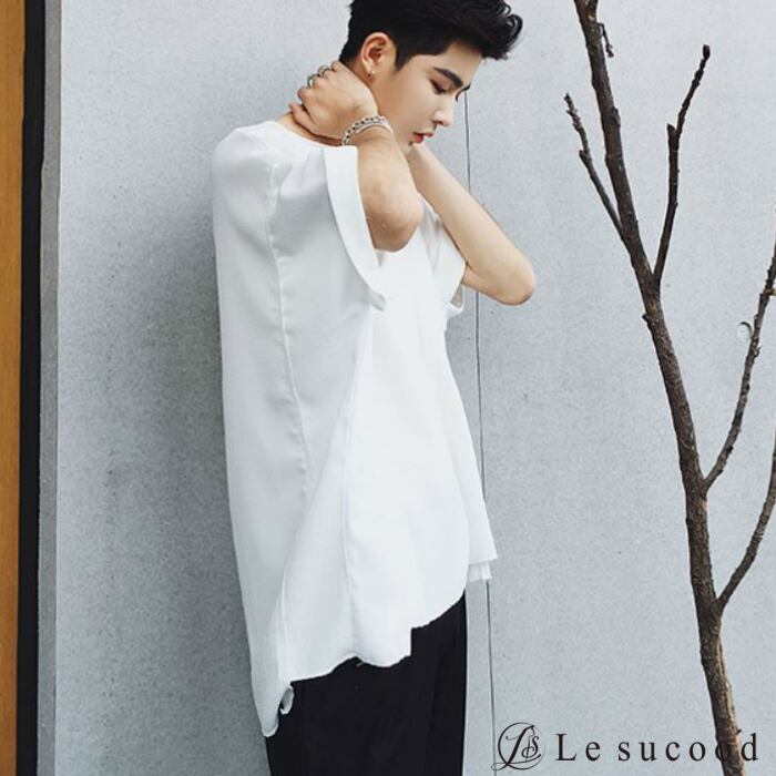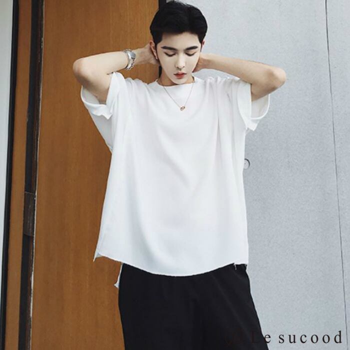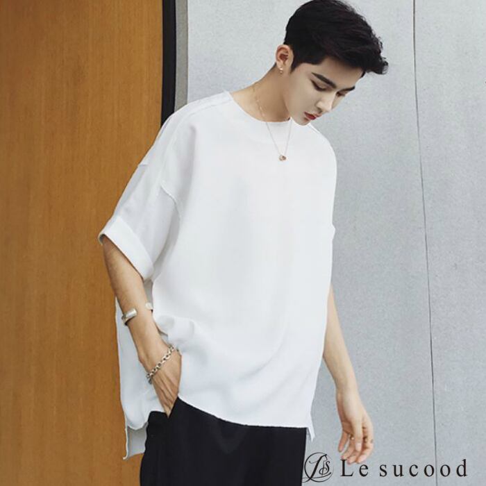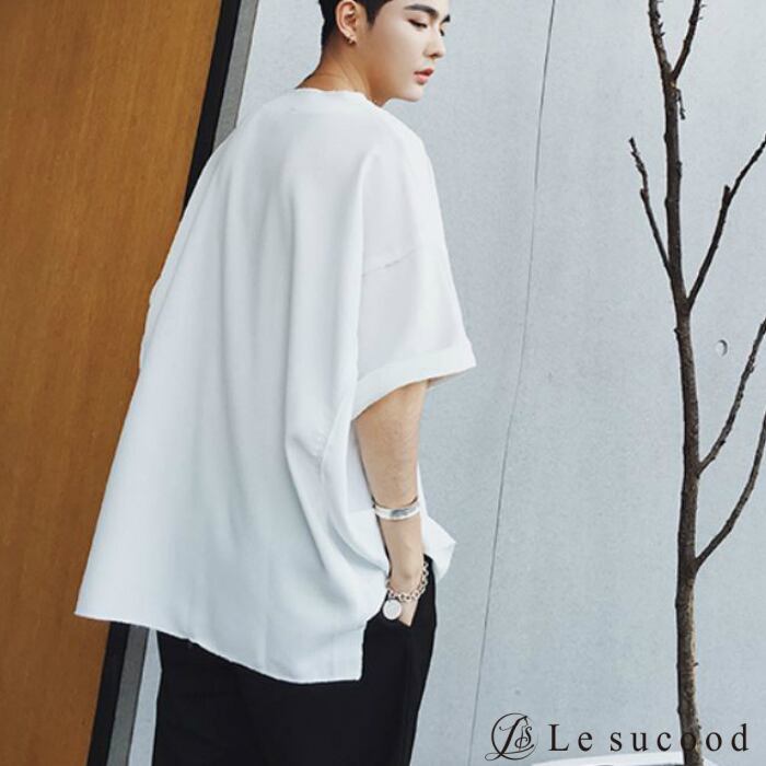 【Le sucood】【お支払い確認後20日以内発送】top248 ロールアップシャツ ベーシックシャツ 半袖 シンプル オーバーシャツ Tシャツ ホワイト 白 トップス カジュアル モード ストリート 白T クルーネック メンズファッション メンズ