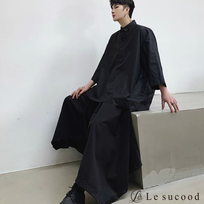 【Le sucood】【お支払い確認後20日以内発送】top250 変形シャツ チャイナシャツ オーバーサイズ ビッグシルエット トップス メンズ レディース 白 黒 ホワイト ブラック シンプル 無地 モード ストリート V系 個性的