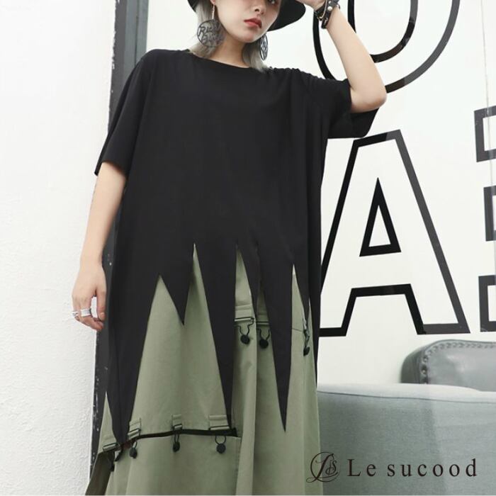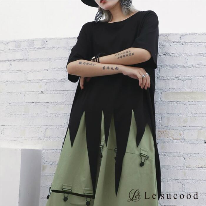 【Le sucood】【お支払い確認後20日以内発送】top258 ギザギザ変形トップス 変形シャツ トップス シャツ ロング モード ストリート 韓国 ブラック ホワイト 黒 白 ユニセックス アシメ アシンメトリー