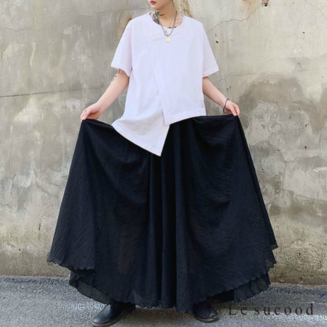 【Le sucood】btm097 メンズスカート ドレープスカート ロングスカート ロング丈 ワイド モード 黒 ブラック メンズ レディース ユニセックス プリーツ ストリート ゴシック mode モード V系 サロン系 大きいサイズ ゆったり フリーサイズ