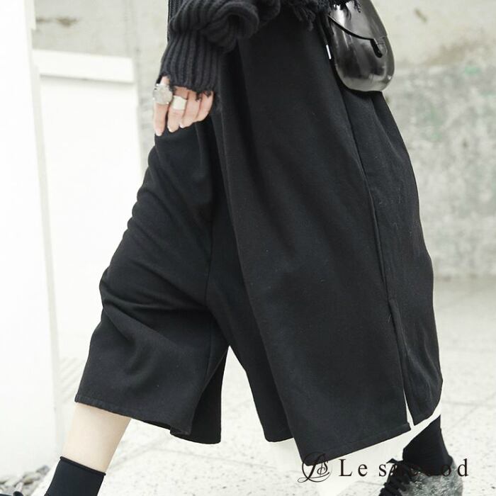【Le sucood】btm100 ワイドパンツ ガウチョパンツ 袴パンツ ロングスカート ドレープスカート レイヤード アシンメトリー レディース ゆったり 大きいサイズ モード ストリート カジュアル シンプル 黒 ブラック ゴシック ユニセックス フリーサイズ