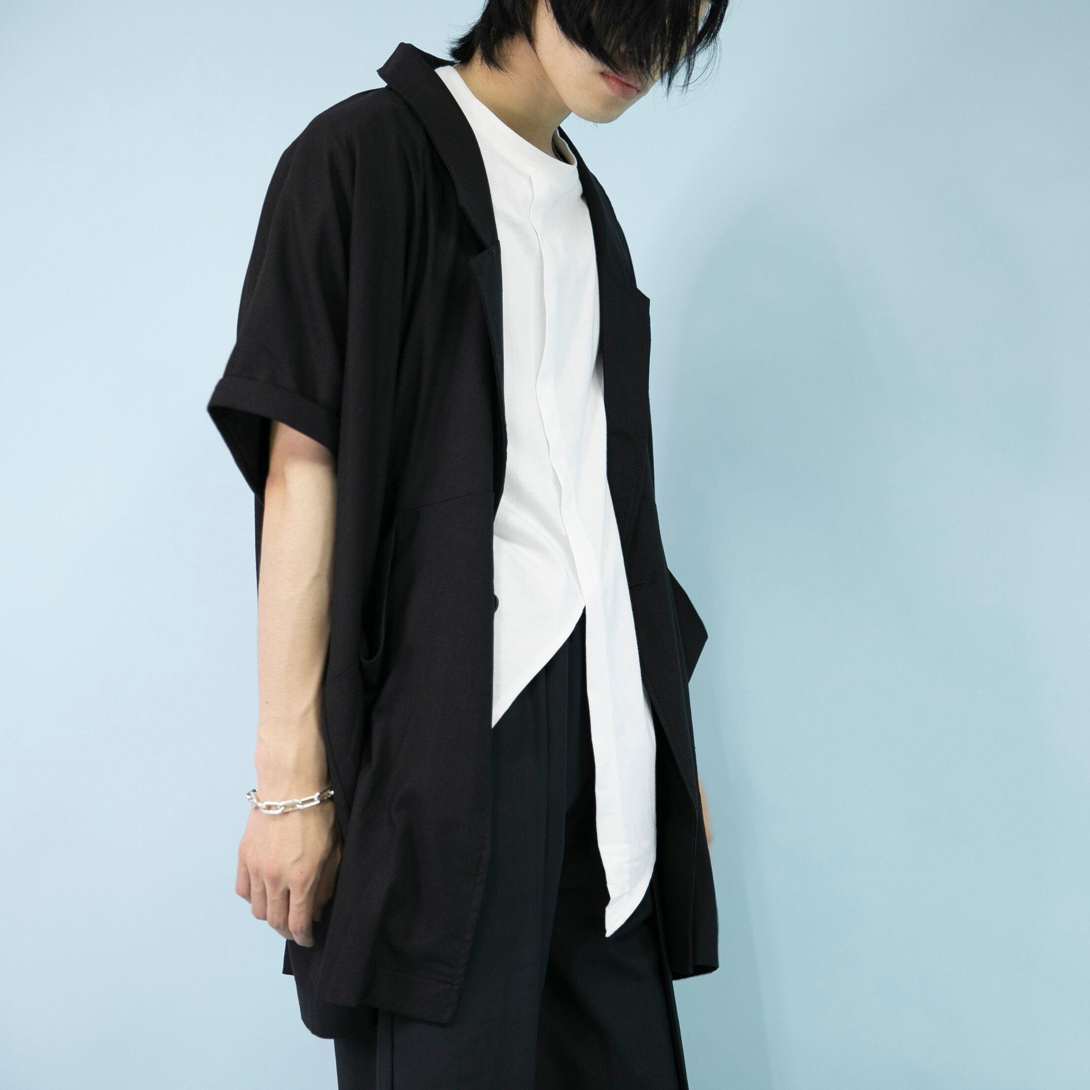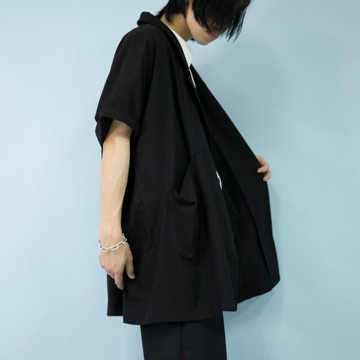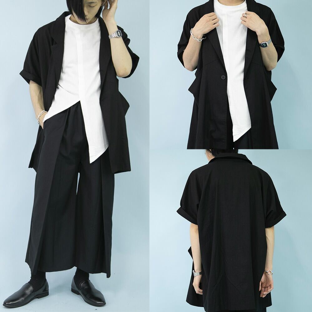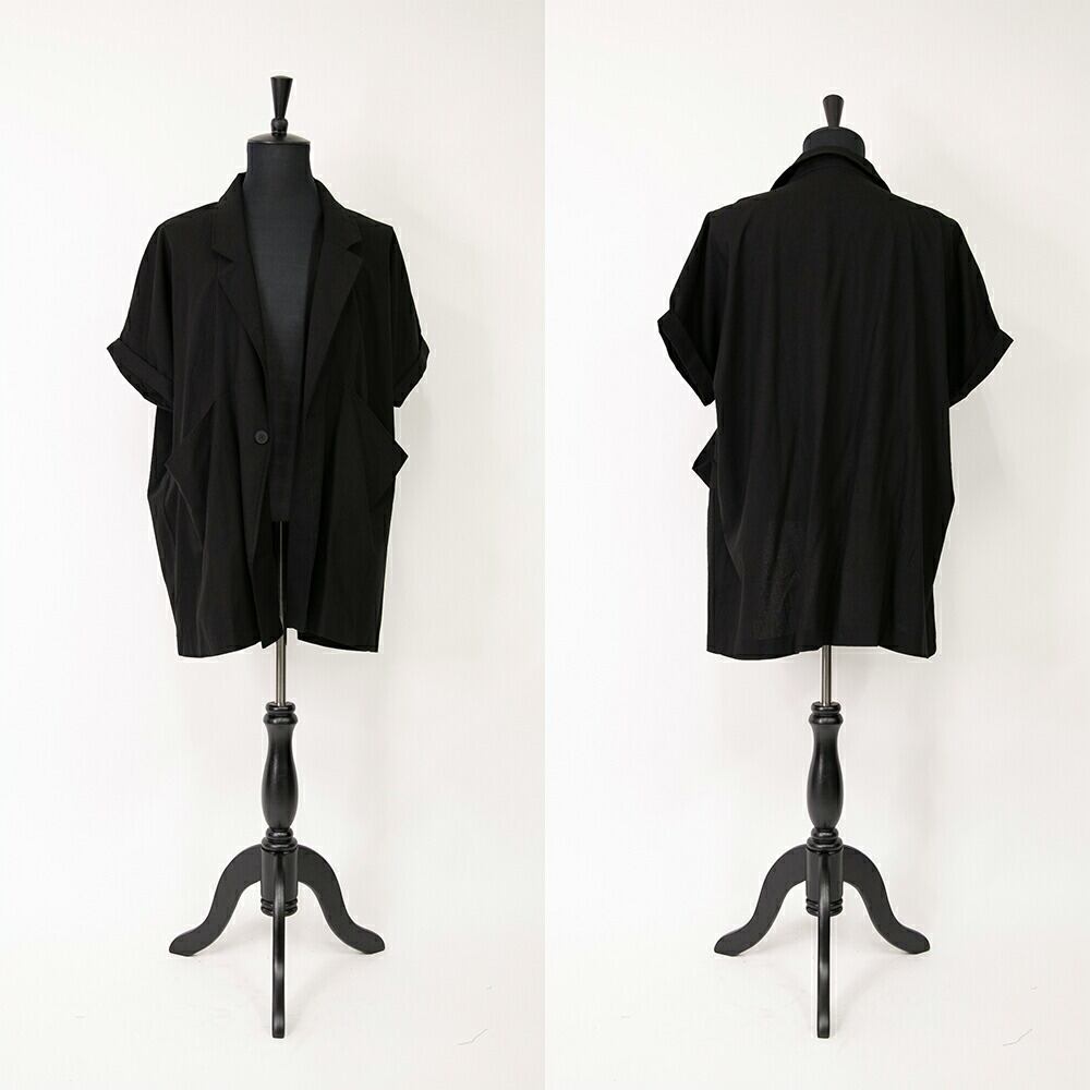 【Le sucood】【お支払い確認後20日以内発送】ルーズジャケット ジャケット カーディガン 羽織 半袖 メンズ レディース 大きいサイズ ゆったり ビッグシルエット モード系 コーディガン 夏カーデ 無地 シンプル おしゃれ 黒 ブラック
