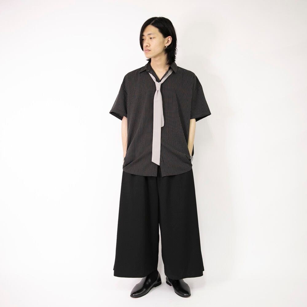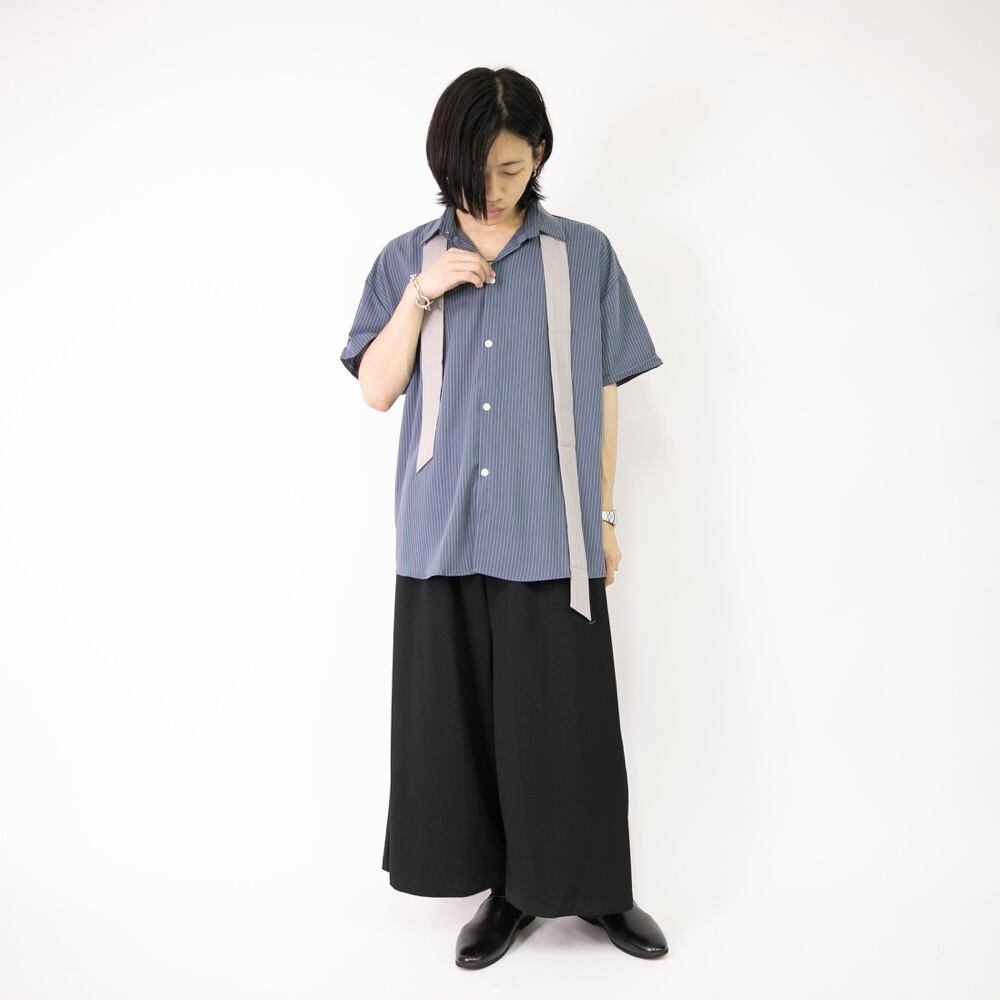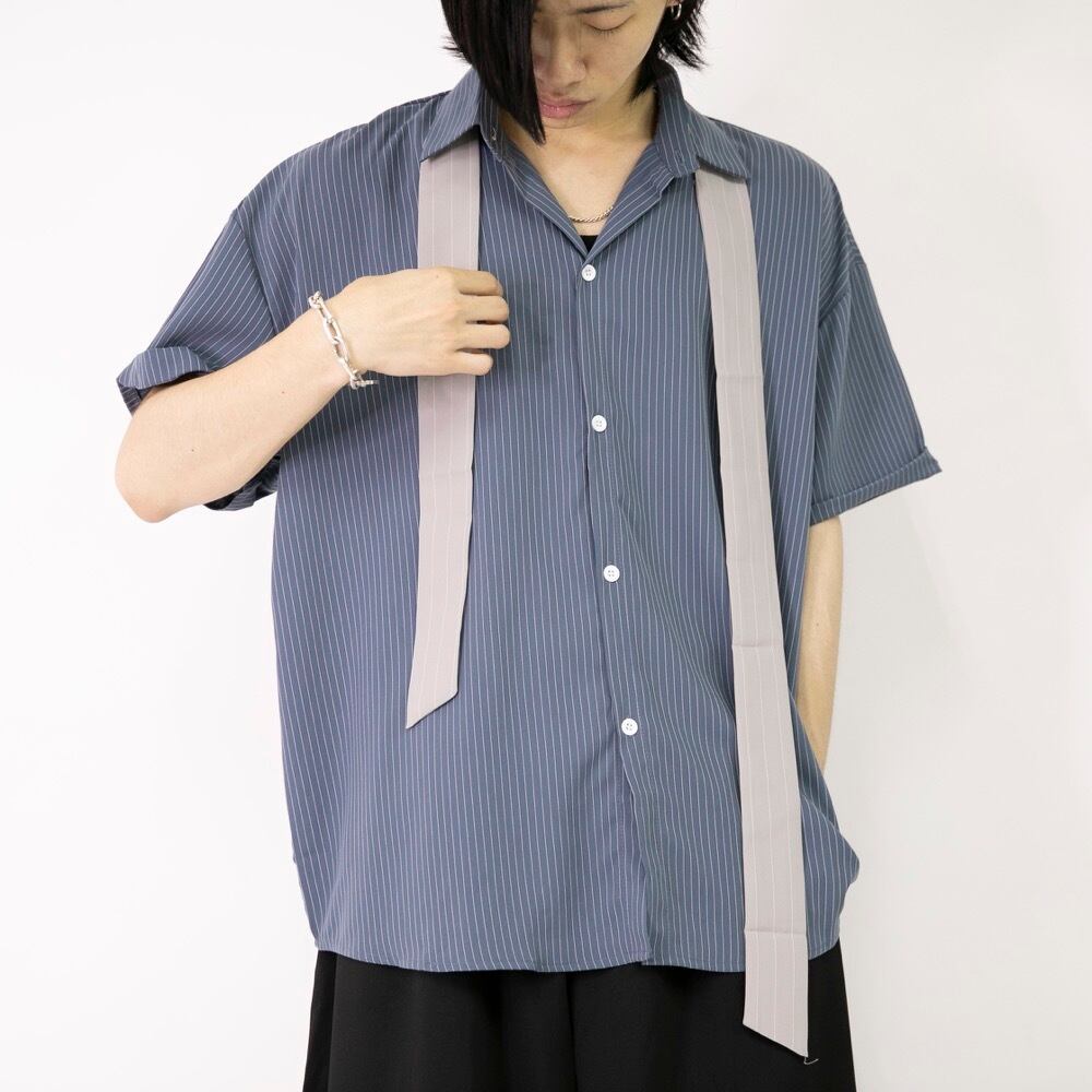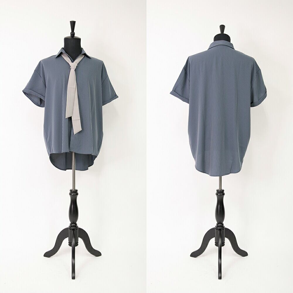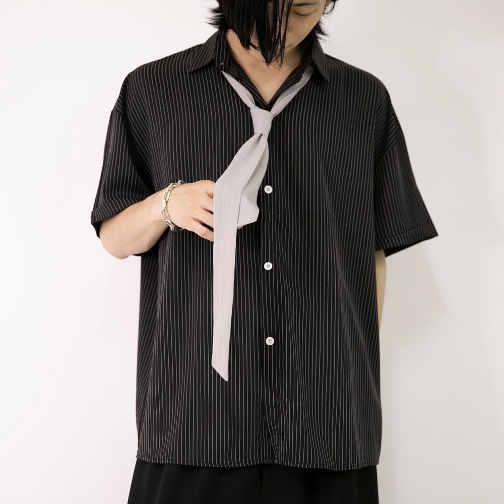 【Le sucood】【お支払い確認後20日以内発送】ストライプシャツ カジュアル 黒 青 ブラック ブルー ゆったり 大きめ ビッグ ストライプ 半袖 夏 羽織 シンプル モード ストリート ペアルック | Le sucood
